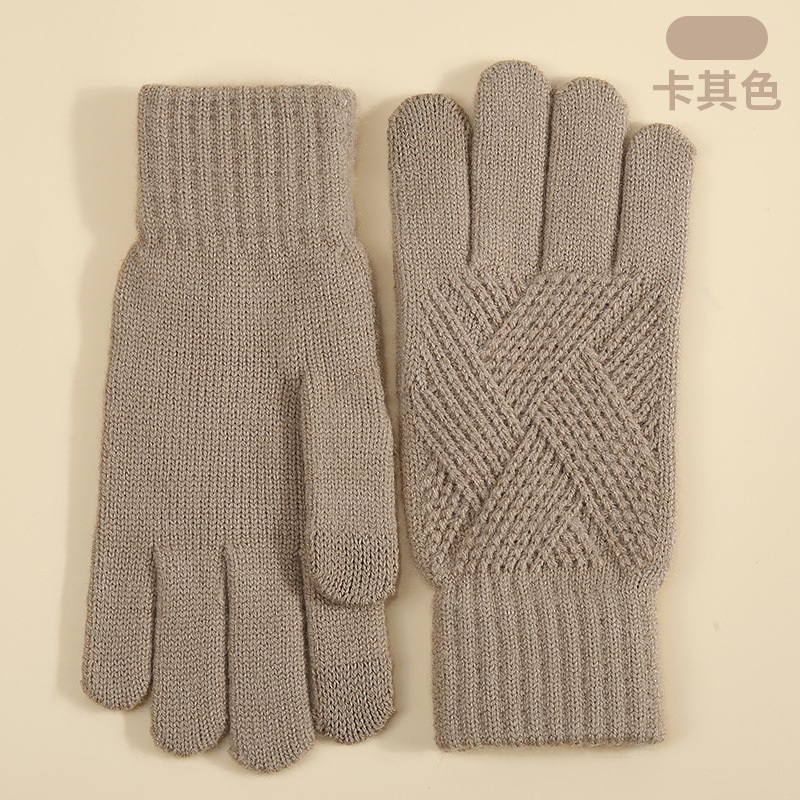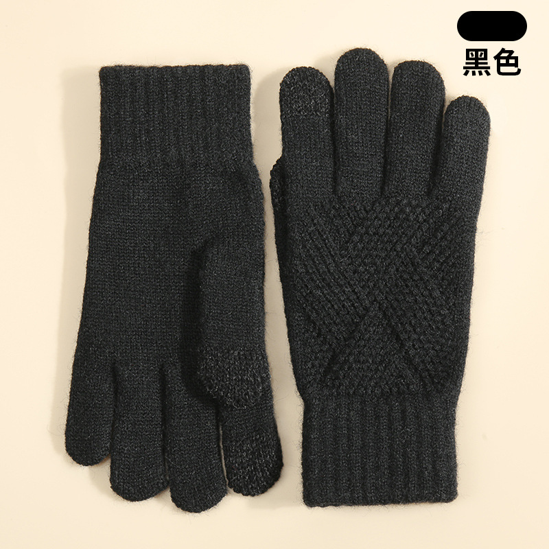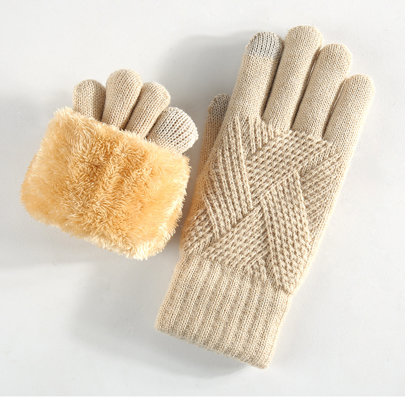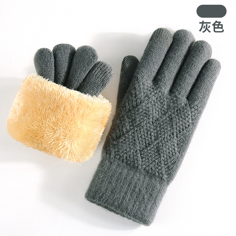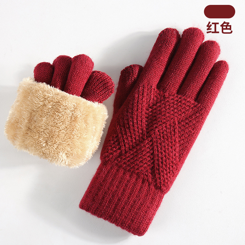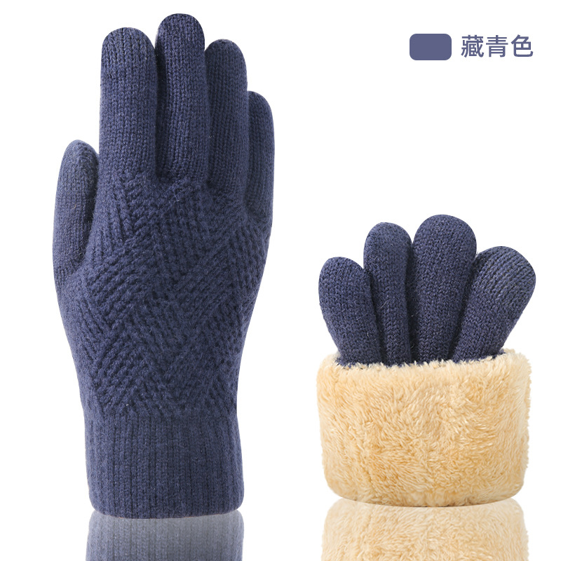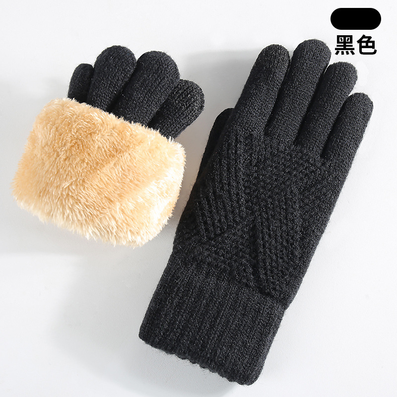 국경을 넘는 새로운 니트 장갑 남성과 여성의 겨울 더블 레이어 기모 두꺼운 야외 승마 따뜻한 솔리드 컬러 터치 스크린 장갑