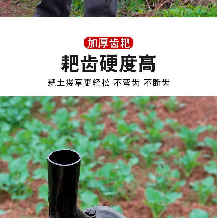 망간 강철 갈퀴 농업 갈퀴 4 치아 철 갈퀴 농업 도구는 토양 느슨한 토양과 잔디 멀티 이빨 갈퀴 올 스틸 갈퀴를 돌립니다.