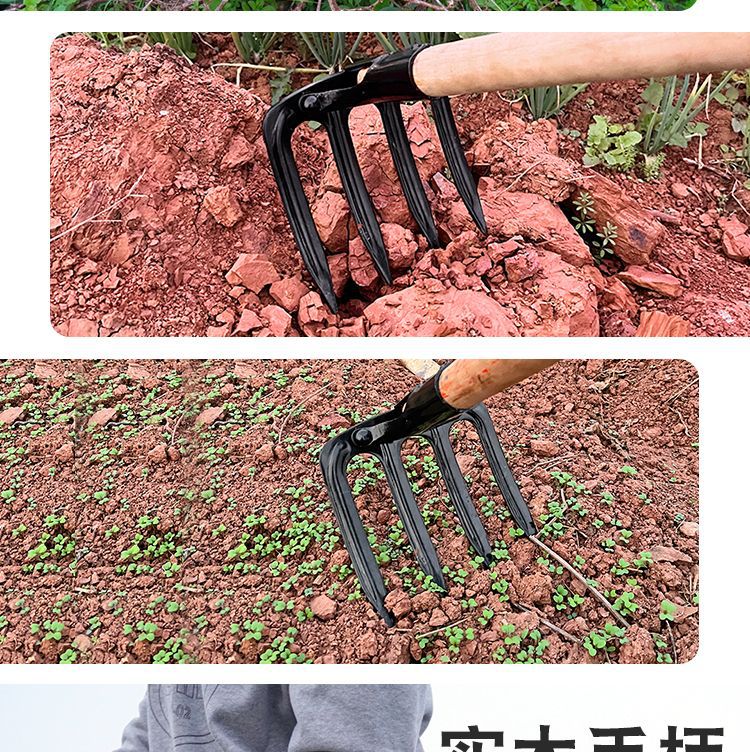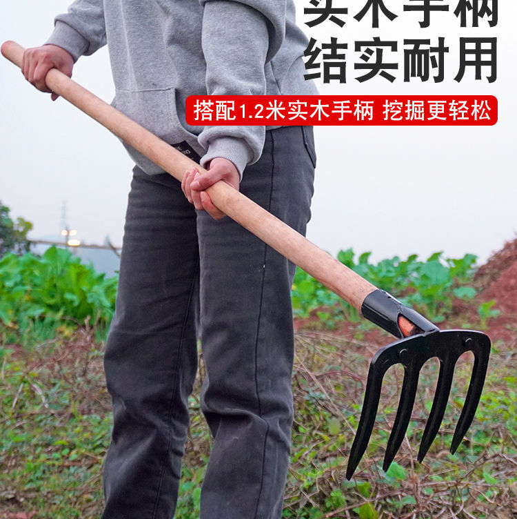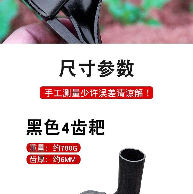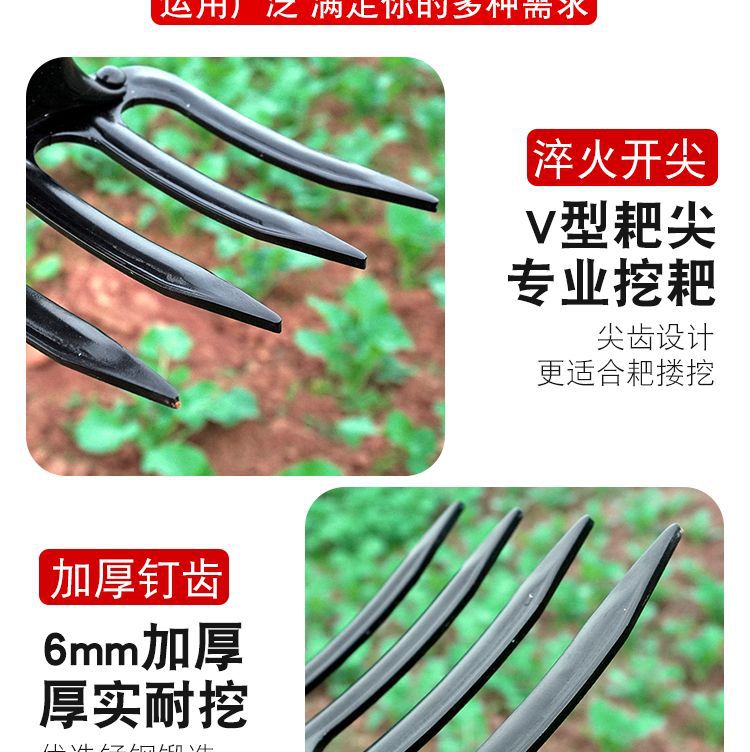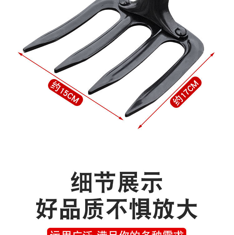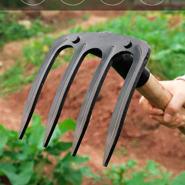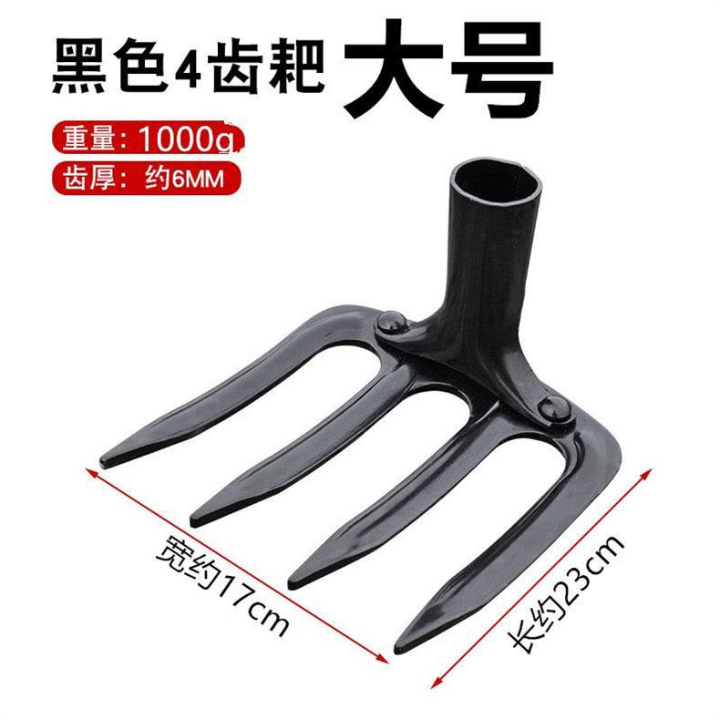 • 두꺼운 검정색 망간강 대형 4톱니 갈퀴(너비 17cm) + 1.2m 유칼립투스 나무 손잡이