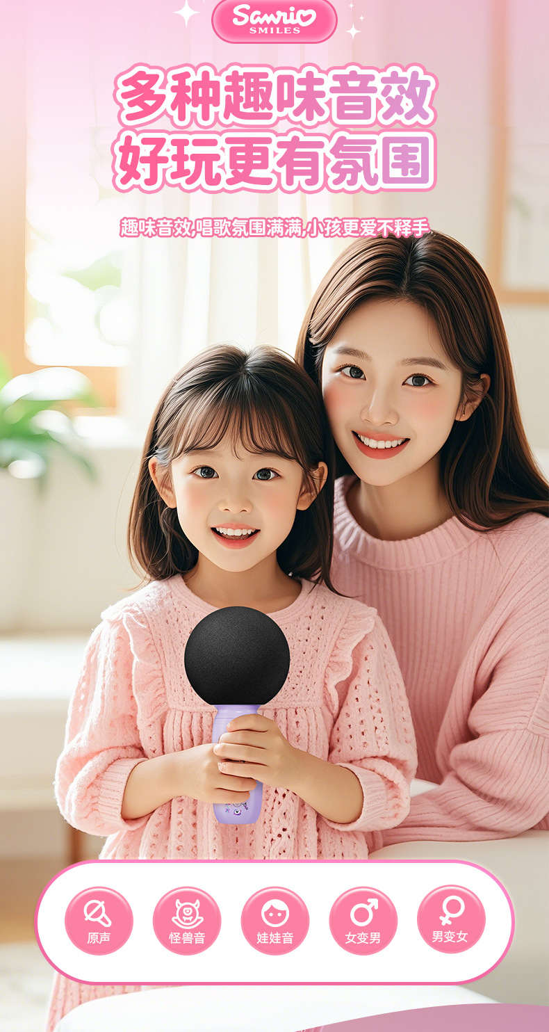 Sanrio/Sanrio 어린이 노래방 마이크 오디오 통합 무선 블루투스 노래 사운드 카드 마이크 휴대용스토어 가기