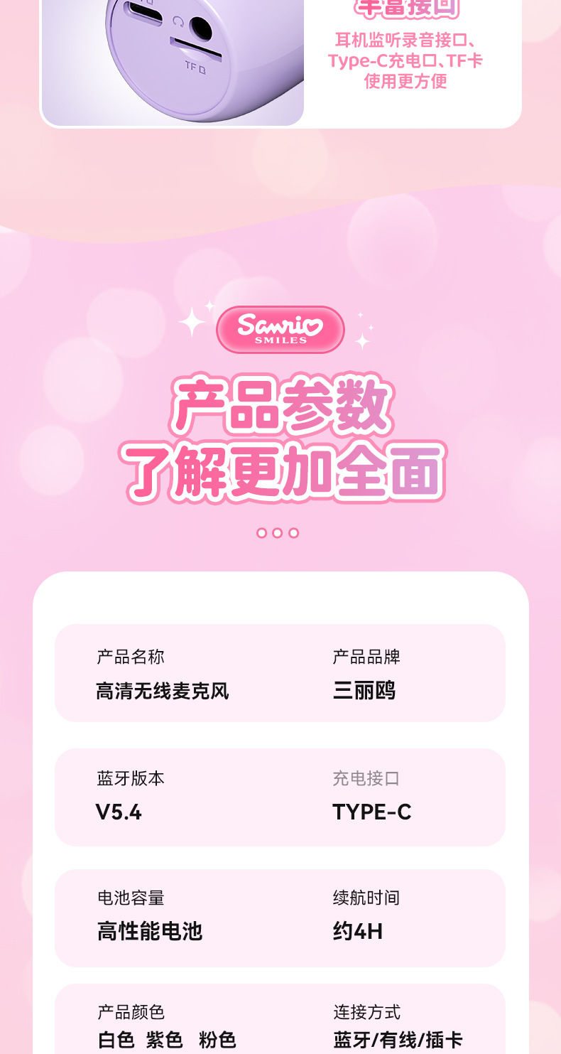 Sanrio/Sanrio 어린이 노래방 마이크 오디오 통합 무선 블루투스 노래 사운드 카드 마이크 휴대용