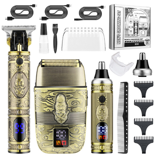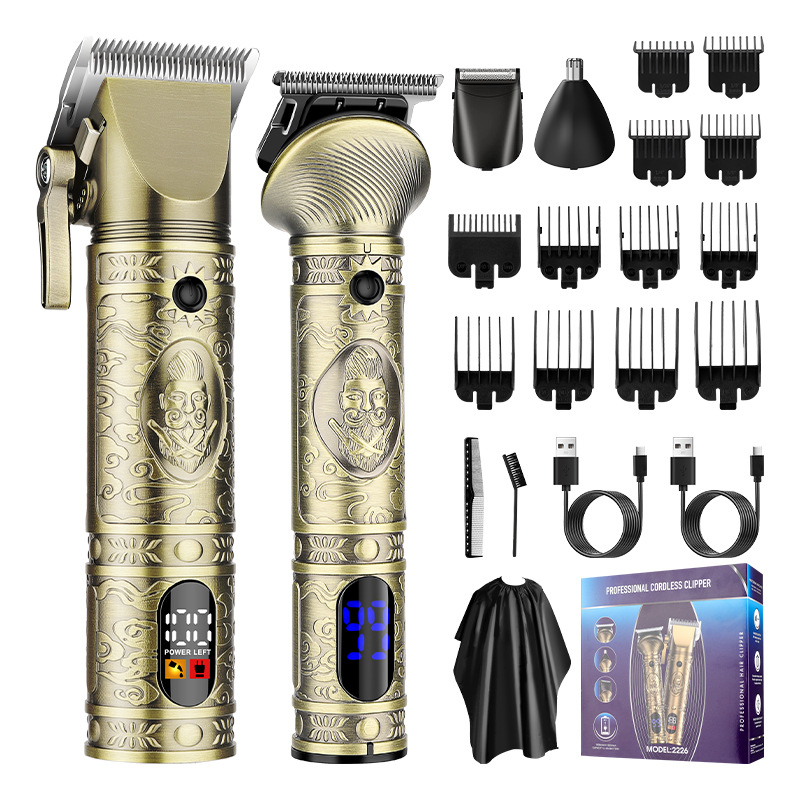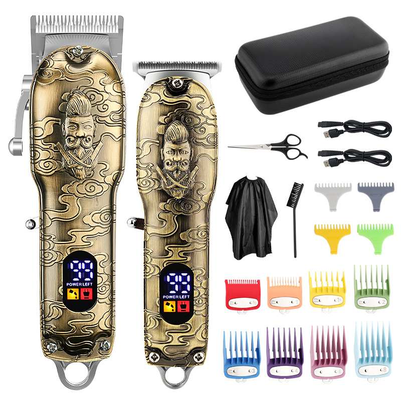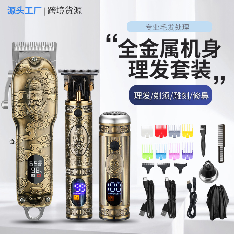 아마존 뜨거운 판매 빈티지 헤어 클리퍼 세트 전기 금속 오일 헤드 전기 클리퍼 헤어 살롱 조각 헤어 클리퍼