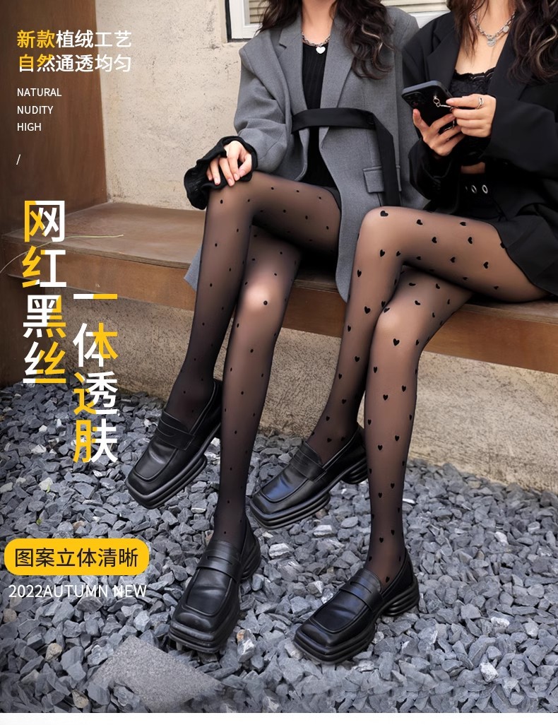사랑의 웨이브 도트 실크 스타킹 여성 기모 두꺼운 가을과 겨울 빛 다리 아티팩트베이스 가짜 살포 잠금 편지 팬티 스타킹