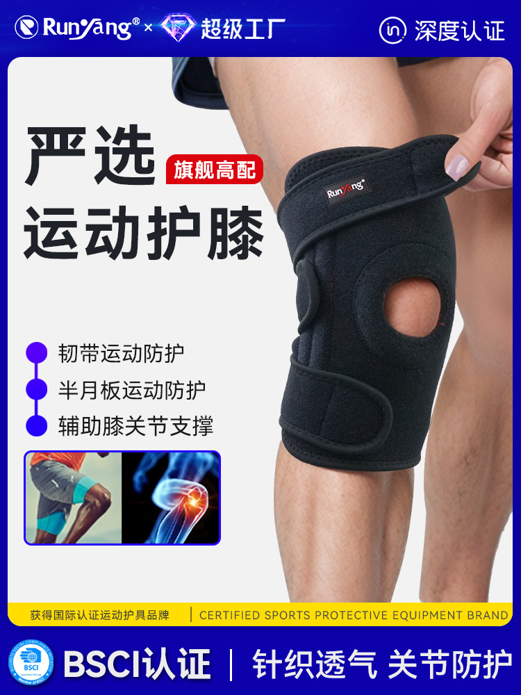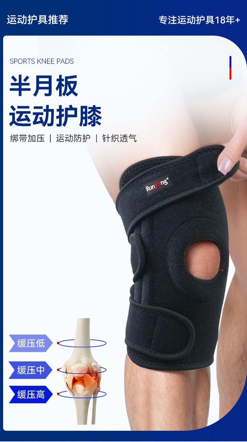 스포츠 무릎 패드, 스트랩 3개, 스프링 4개, 압력 무릎 패드, 달리기, 하이킹, 등산, 배드민턴, 무릎 관절 보호