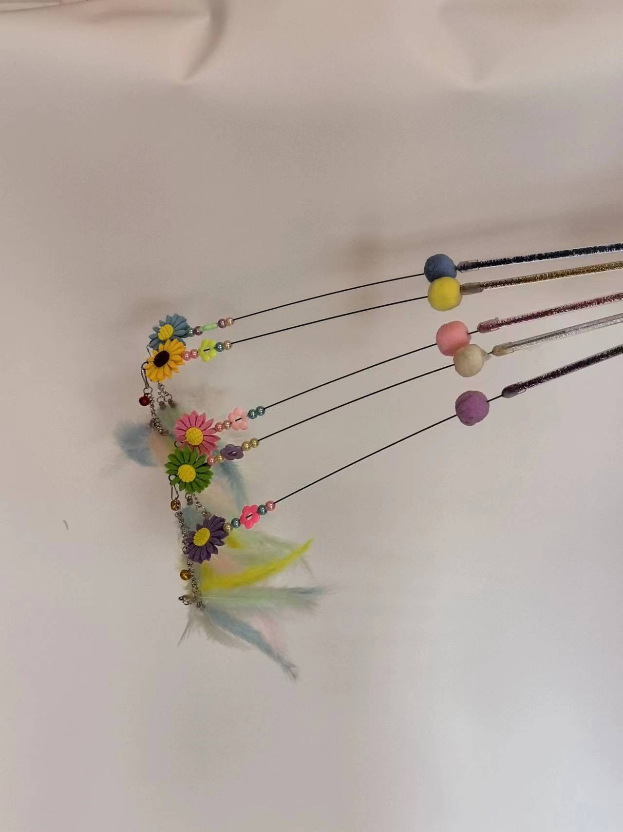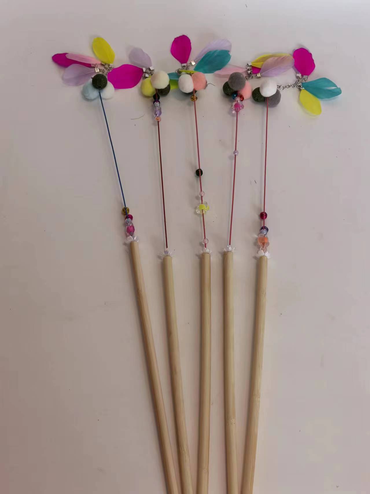 다채로운 깃털 강철 와이어 길어진 고양이 스틱 벨 고양이 스틱 물린 방지 긴 스틱 요정 스틱 공장 도매 직접 판매