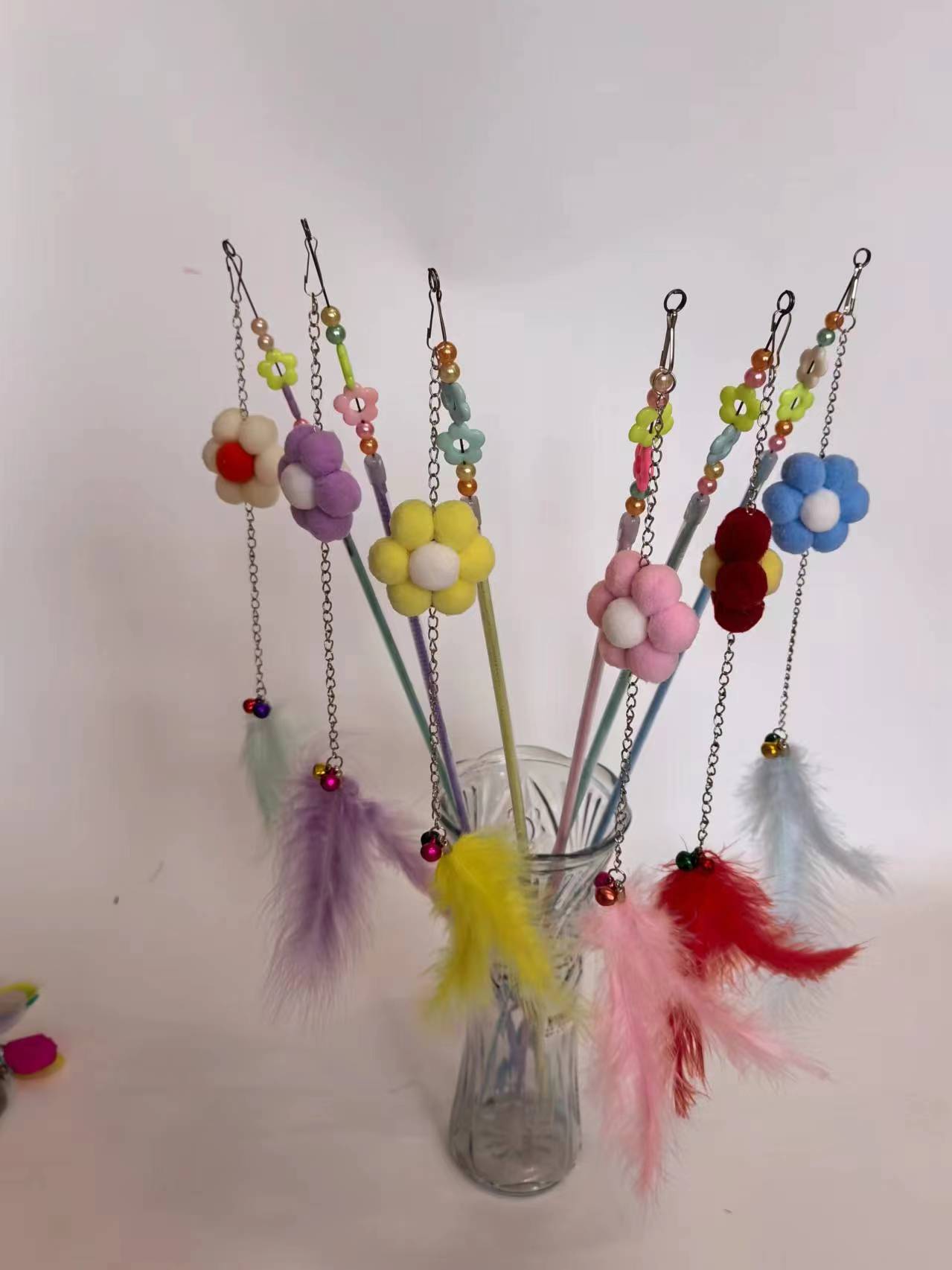 다채로운 깃털 강철 와이어 길어진 고양이 스틱 벨 고양이 스틱 물린 방지 긴 스틱 요정 스틱 공장 도매 직접 판매스토어 가기
