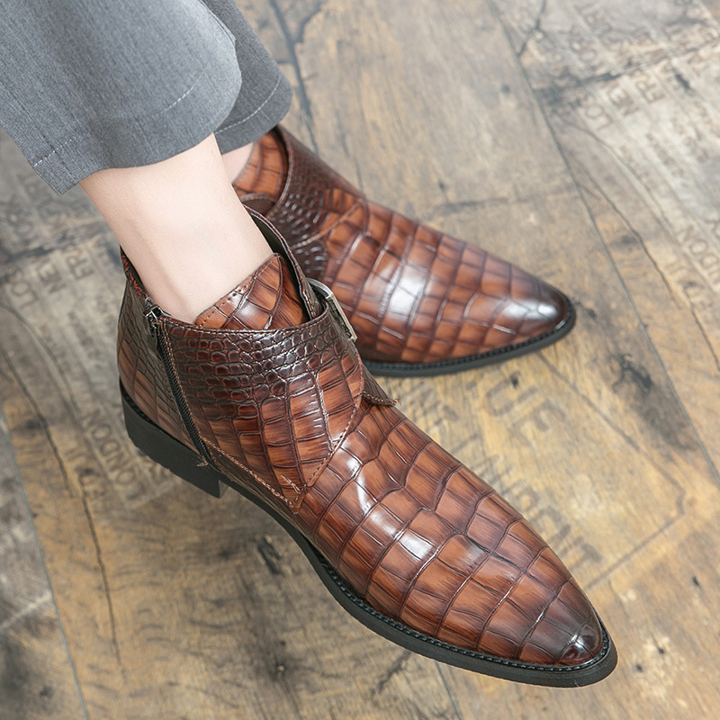 배송 대외 무역 스페셜 48 플러스 사이즈 하이 탑 가죽 신발 남자 사이드 스퀘어 버클 포인팅 첼시 부츠 영국 캐주얼 마틴스토어 가기