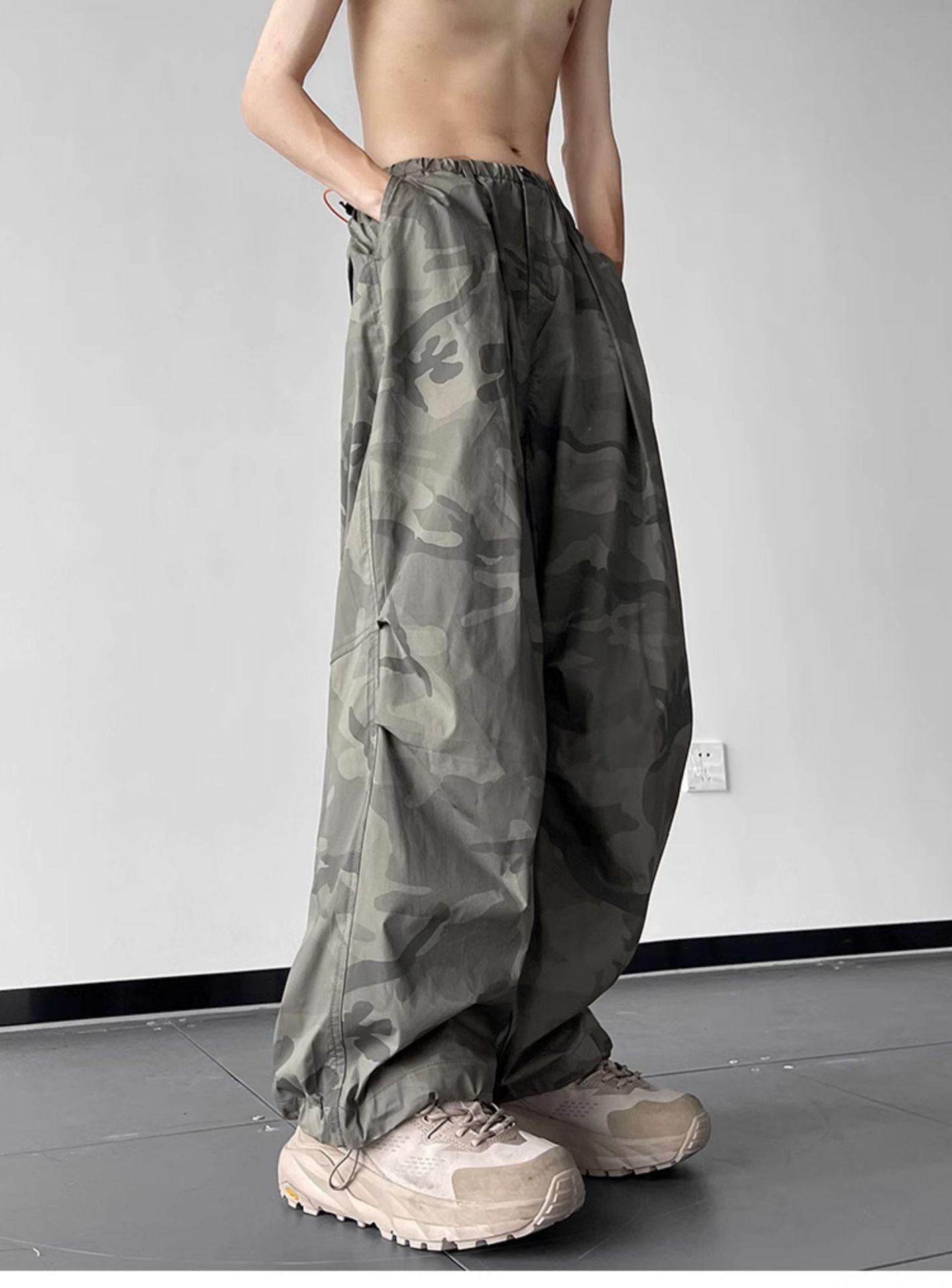 나일론 빠른 건조 위장 낙하산 바지 남성 가을 새로운 미국 스타일 트렌디 브랜드 느슨한 넓은 다리 등산 충전 작업 바지