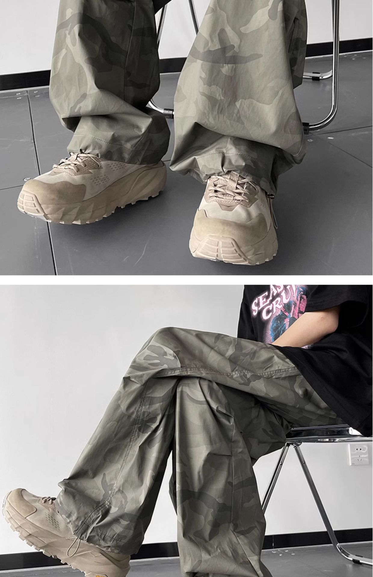 나일론 빠른 건조 위장 낙하산 바지 남성 가을 새로운 미국 스타일 트렌디 브랜드 느슨한 넓은 다리 등산 충전 작업 바지스토어 가기