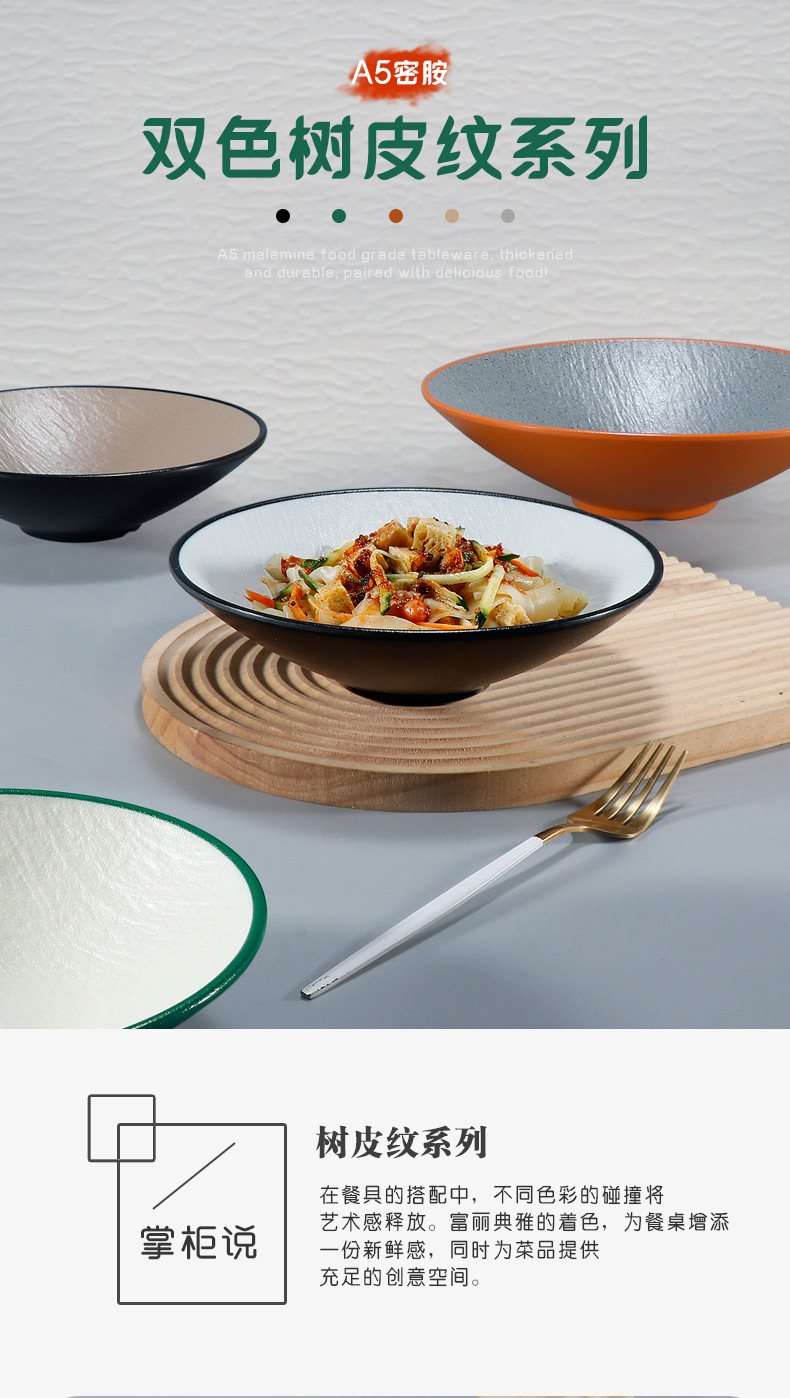 멜라민 일본식 버킷 보울 커버 쌀 그릇 플라스틱 차가운 피부 드레싱 국수 그릇 상업용 얕은 입 대형 사발 크리 수프 보울 라면 그릇