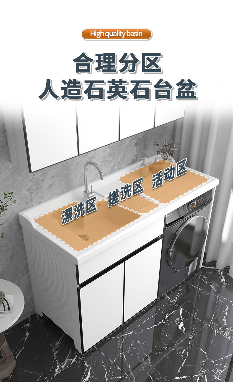 공간 알루미늄 세탁기 캐비닛 석영 돌 조리대와 세탁기 수영장 발코니 조합 하나의 분지 동반자 신제품