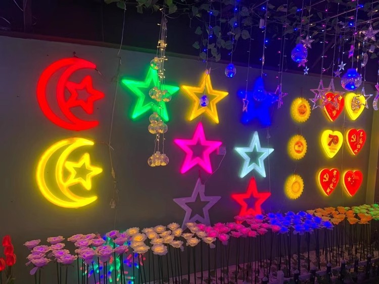Led 다섯개 별 장식 램프 야외 방수 엔지니어링 조명 매달려 나무 램프 빛나는 별 달 눈송이 모델링 램프