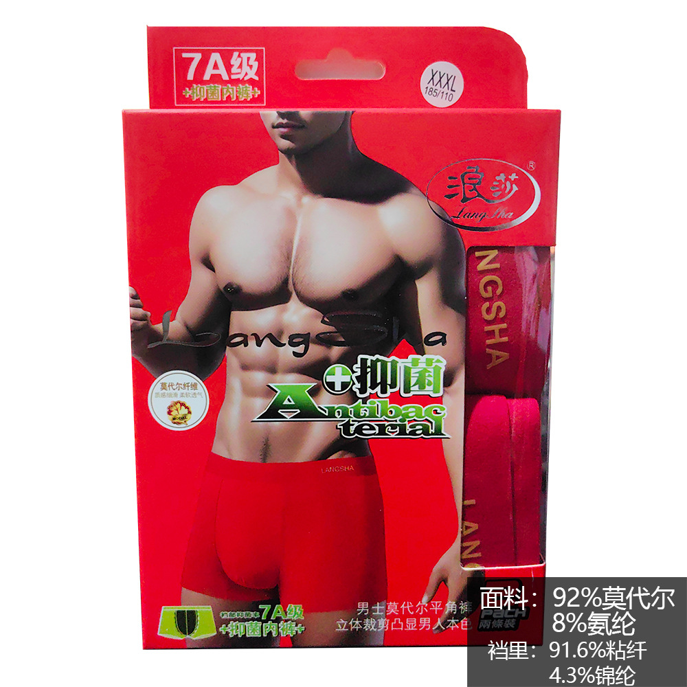 랑샤 남성용 사각팬티 2개입, 슈퍼마켓/쇼핑몰용 속옷, 순면 가랑이 삼각팬티, 60수 박스 포장스토어 가기