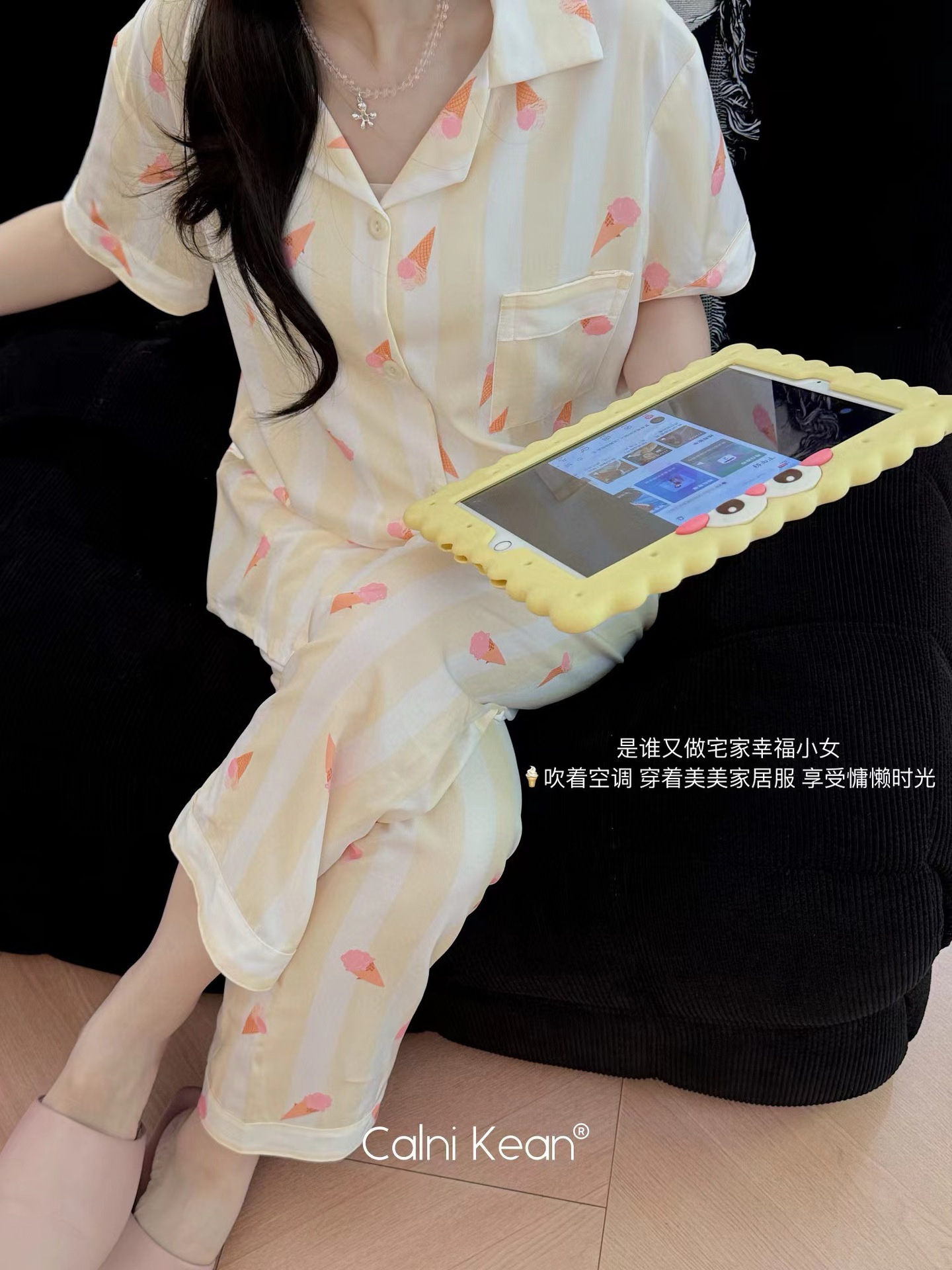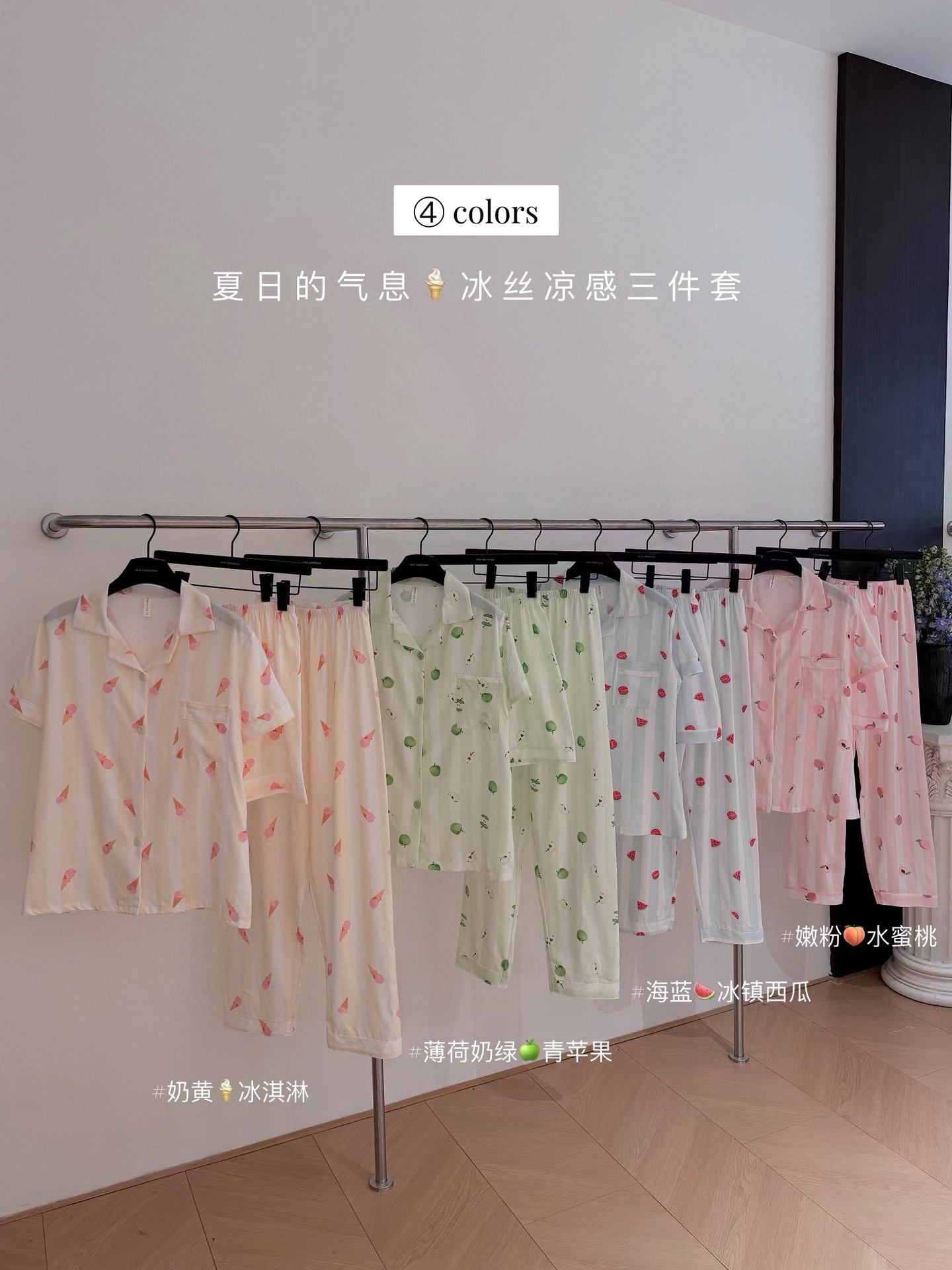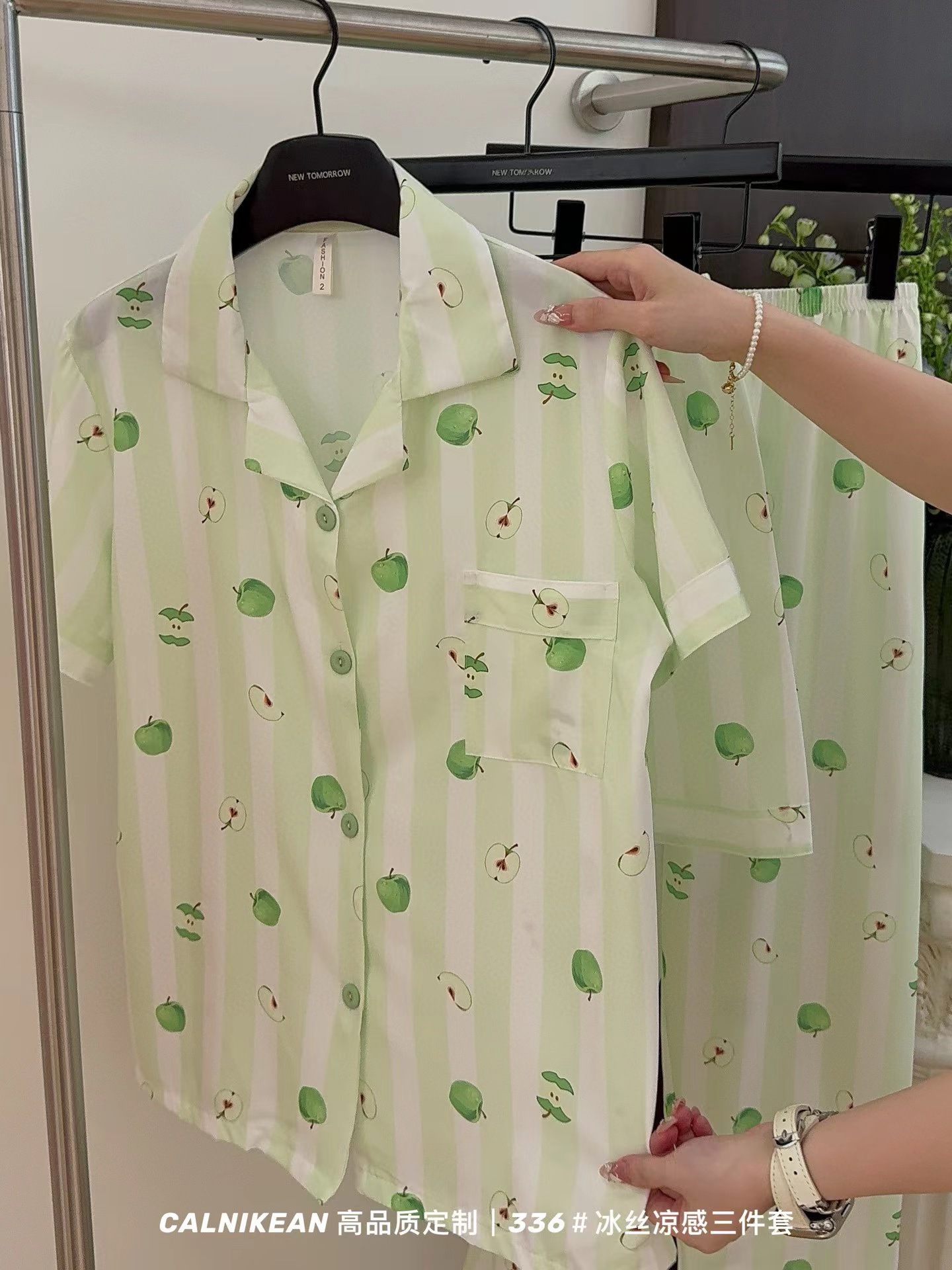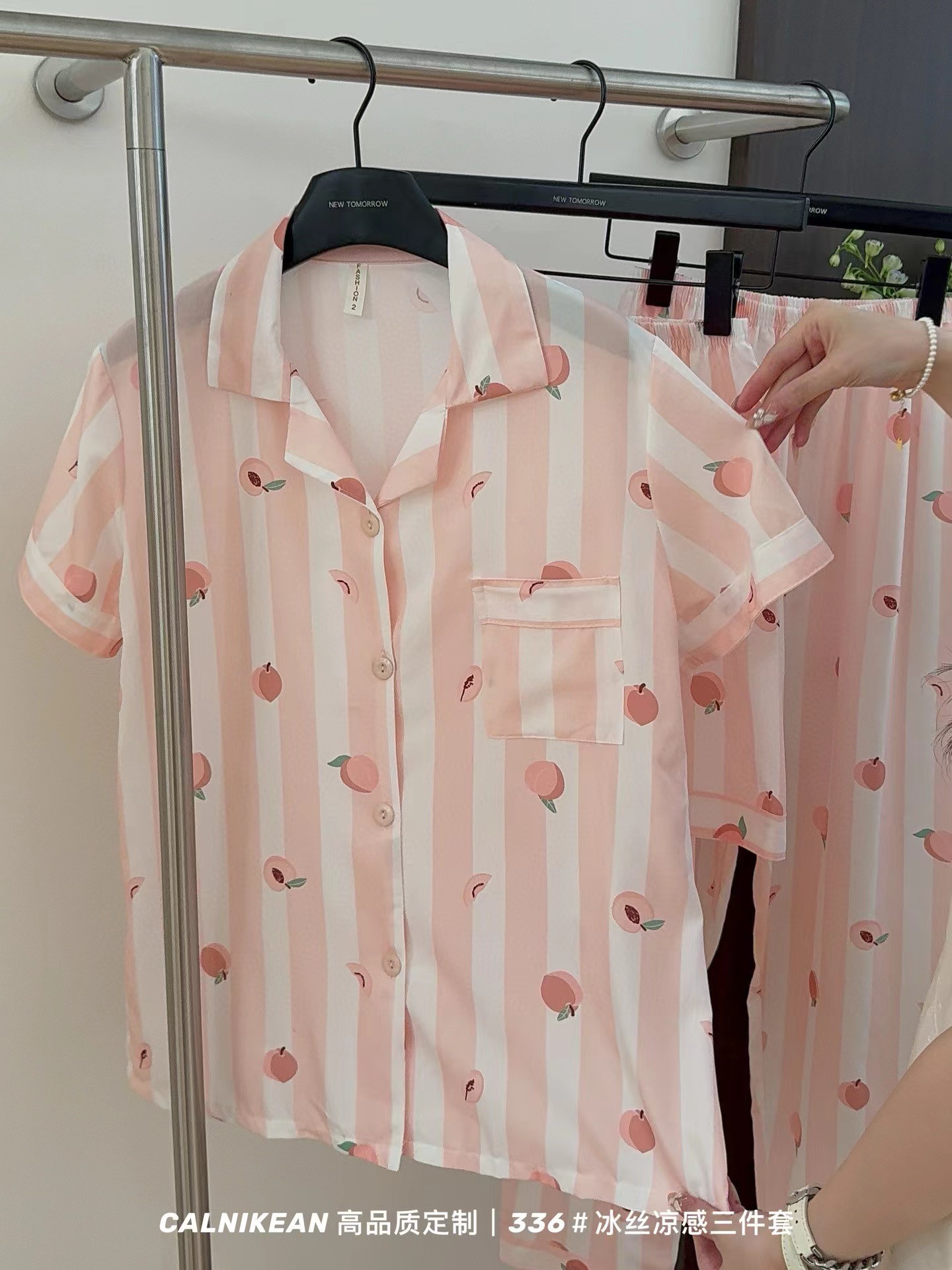 336 # 얼음 실크 시원한 느낌 3 피스 세트 빛 바다 소금 파이 컬러 흰색 슬림 편안한 통기성 숙녀 가정 옷 여름스토어 가기