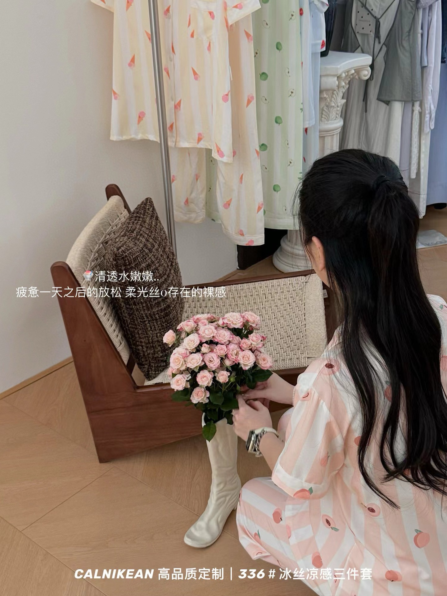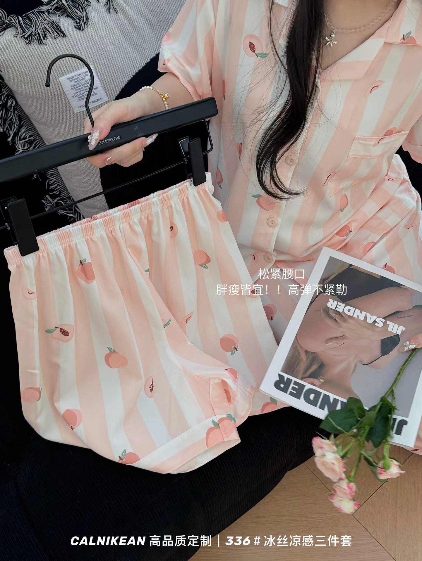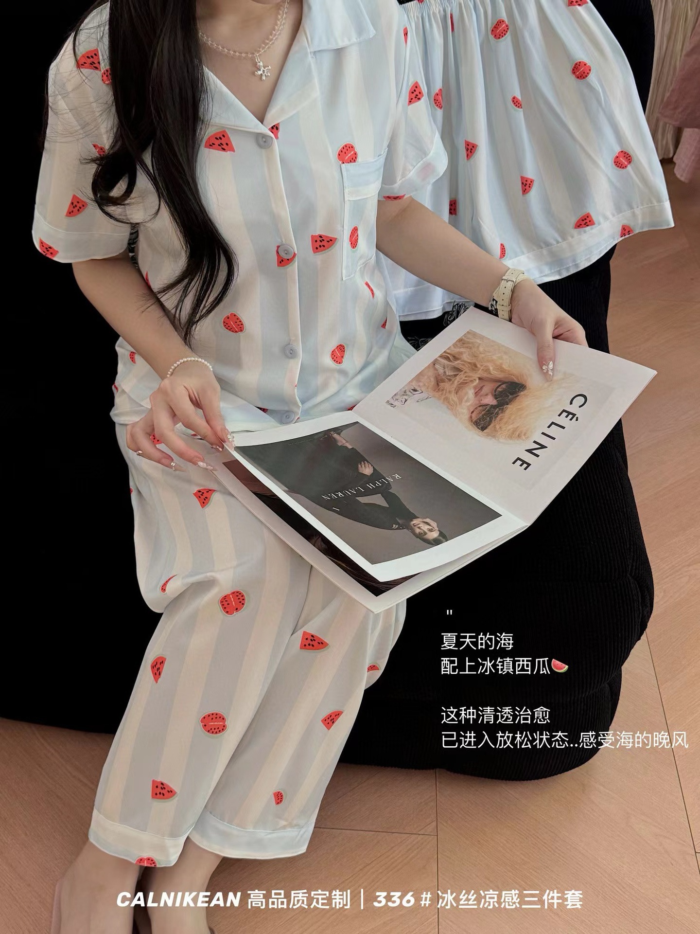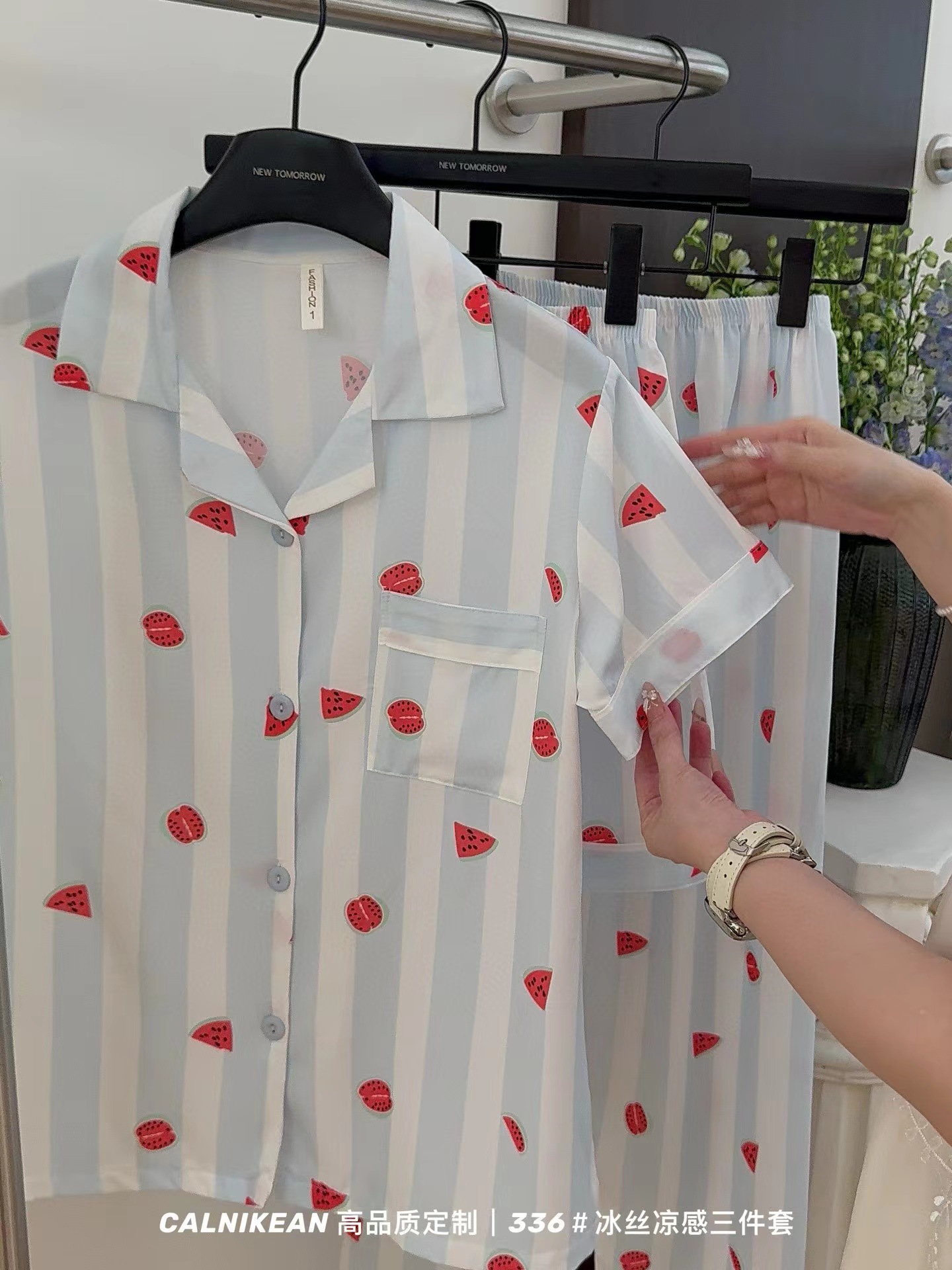 336 # 얼음 실크 시원한 느낌 3 피스 세트 빛 바다 소금 파이 컬러 흰색 슬림 편안한 통기성 숙녀 가정 옷 여름