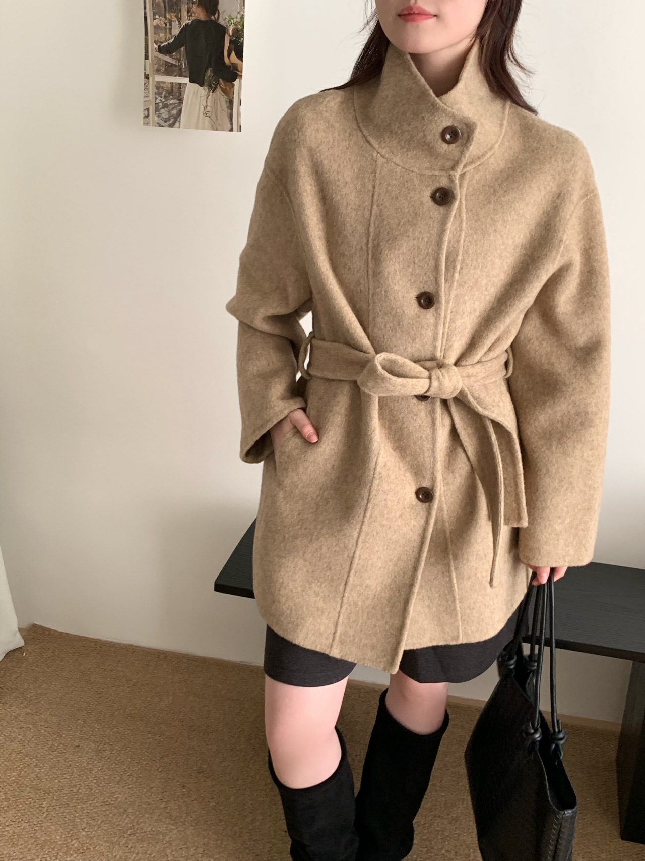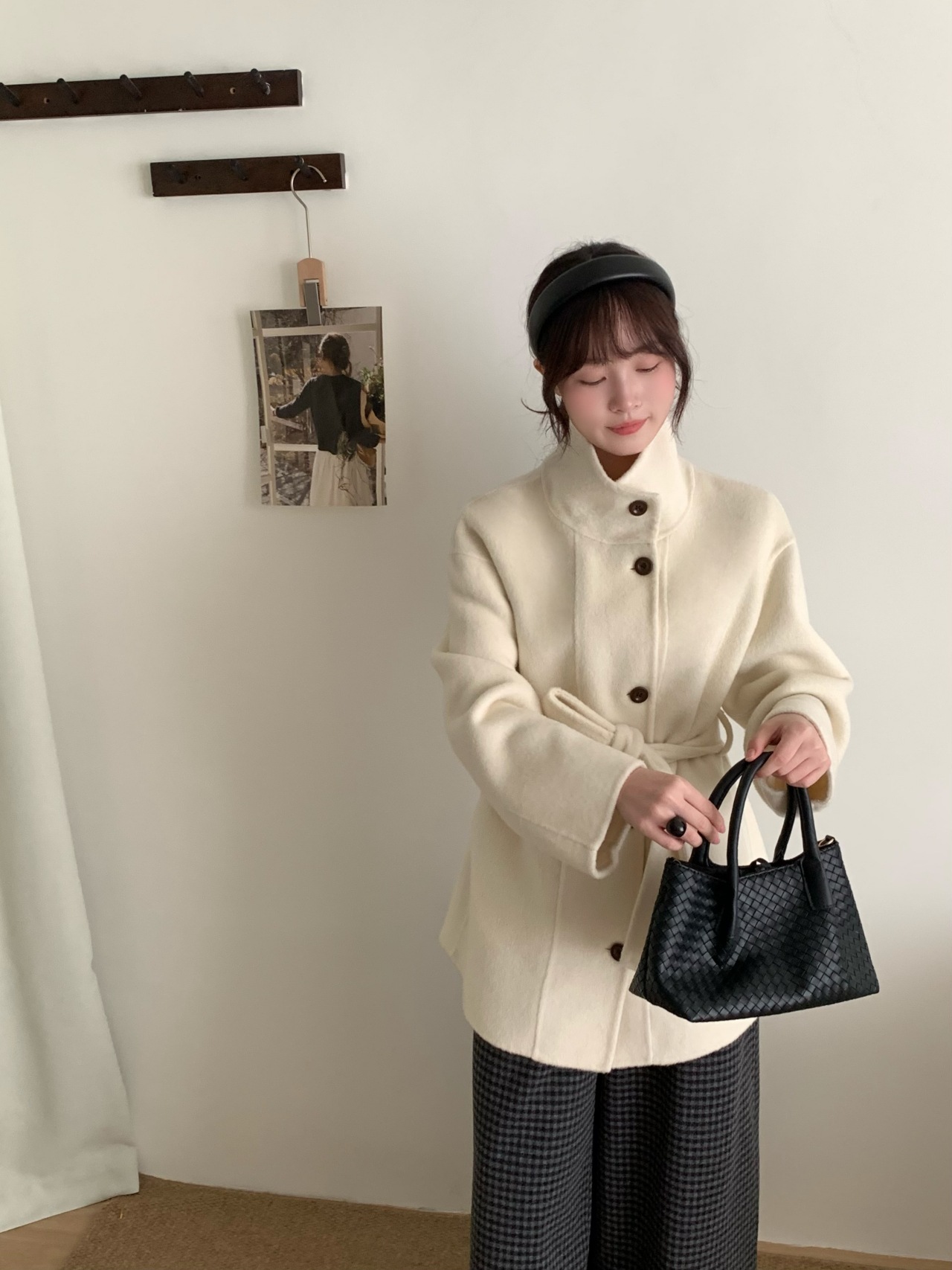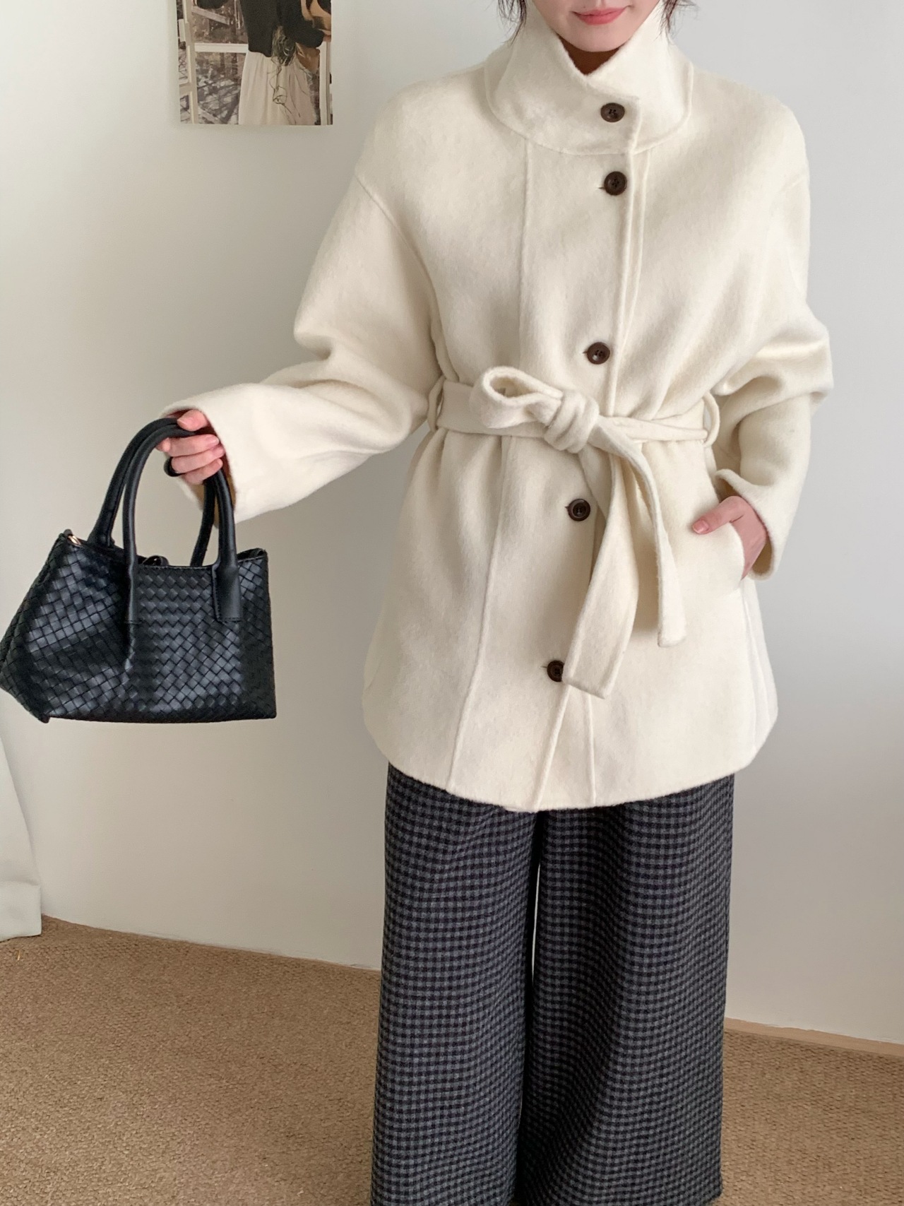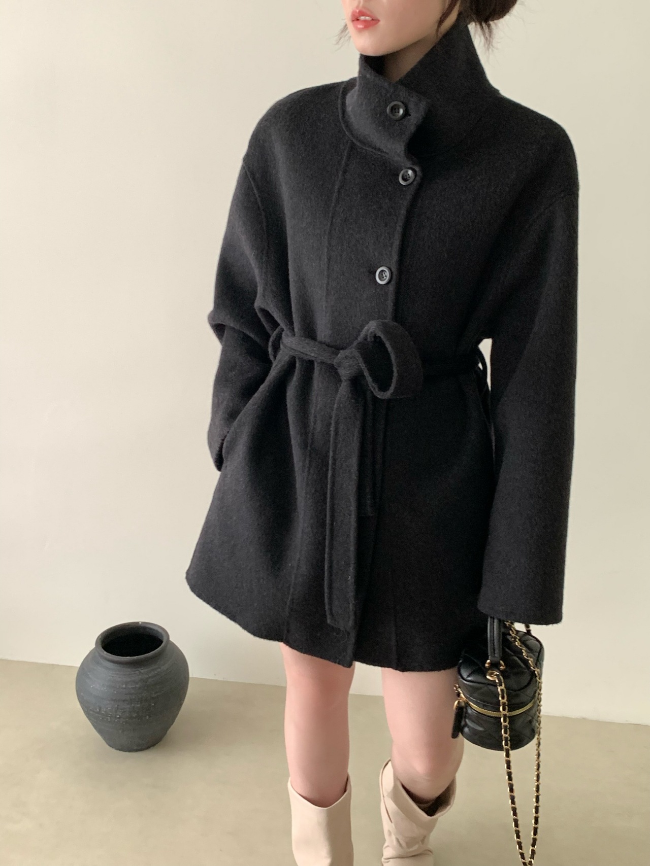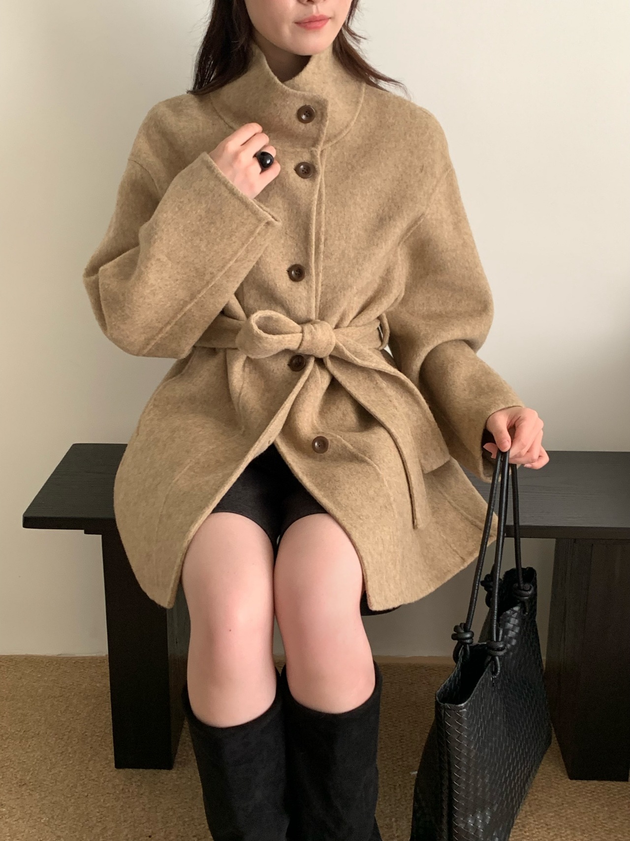 2025 새로운 스타일 더블 스탠드 칼라 레이스 업 캐시미어 울 코트 여성 한국 스타일 슬림 다용도 작은 모직 코트스토어 가기