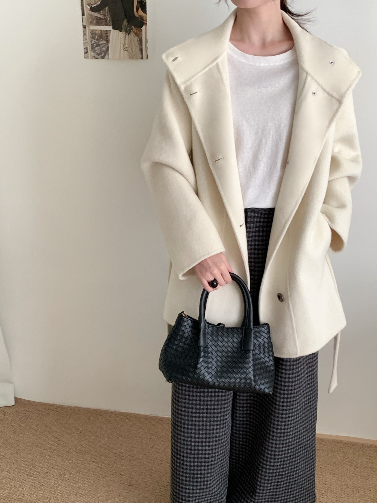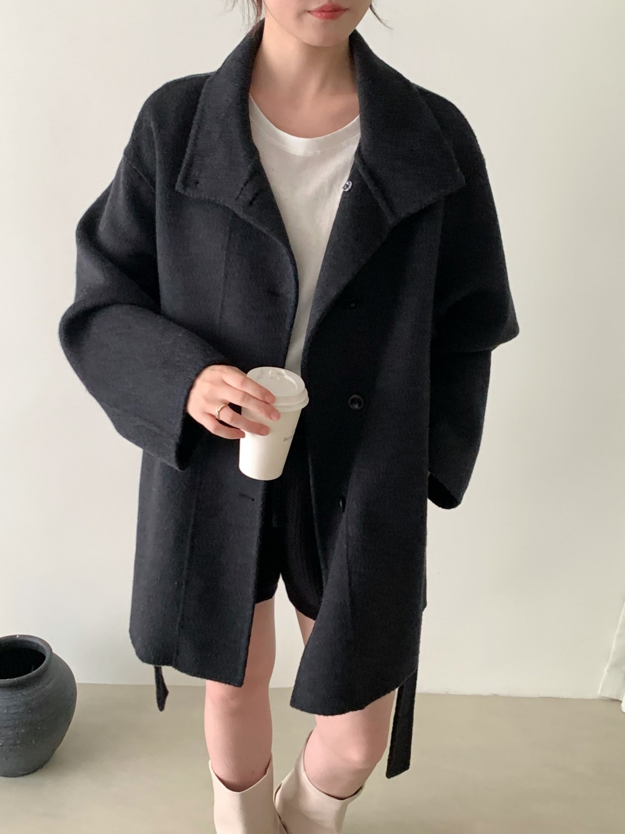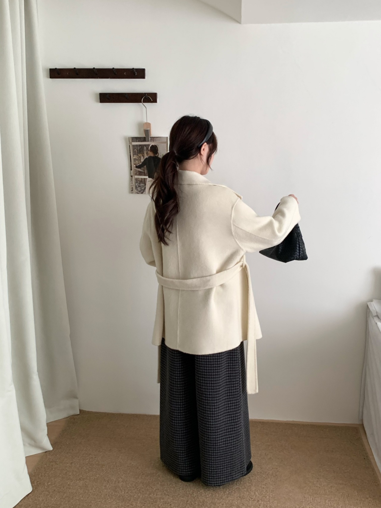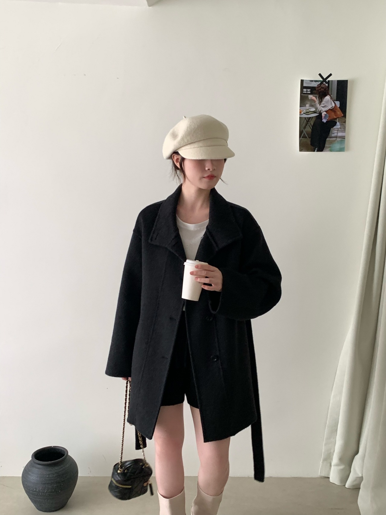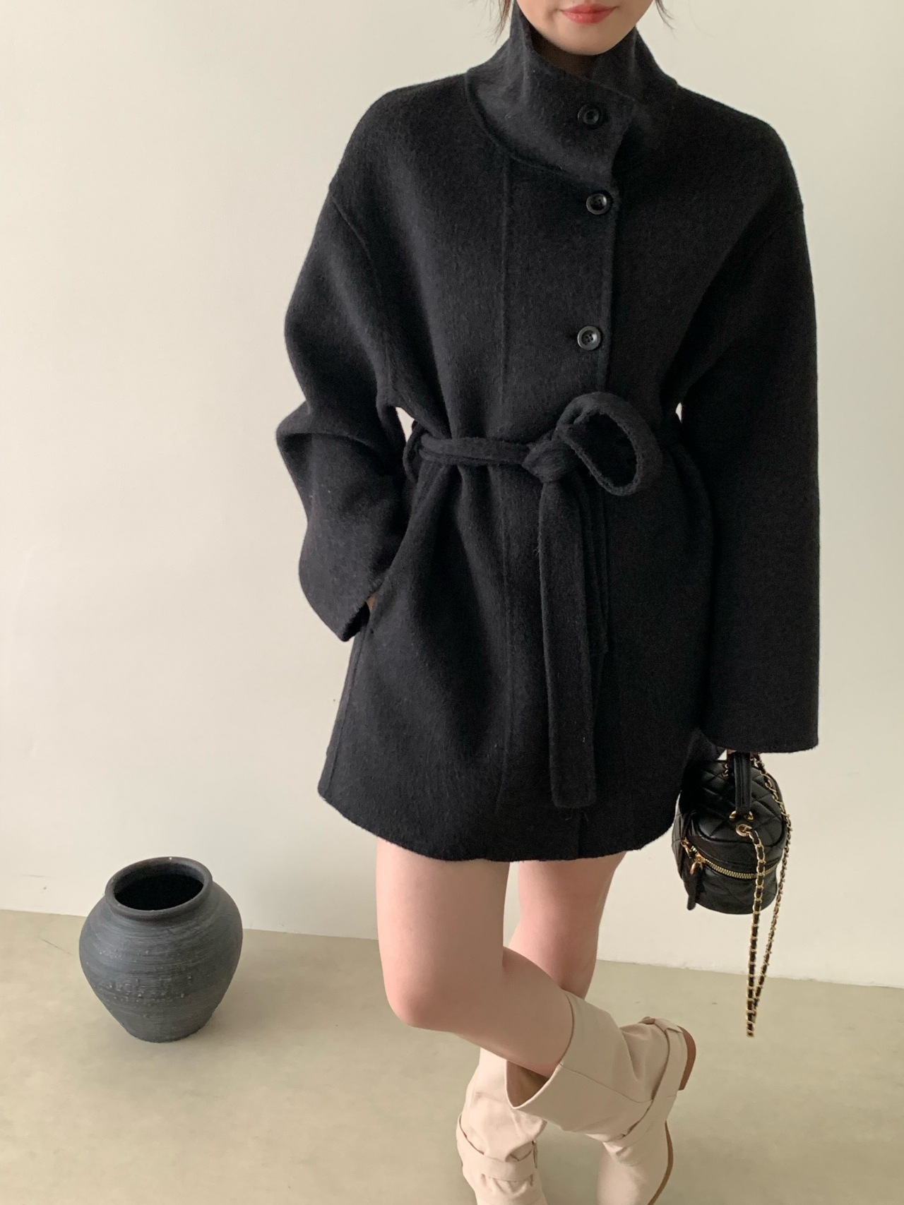 2025 새로운 스타일 더블 스탠드 칼라 레이스 업 캐시미어 울 코트 여성 한국 스타일 슬림 다용도 작은 모직 코트스토어 가기