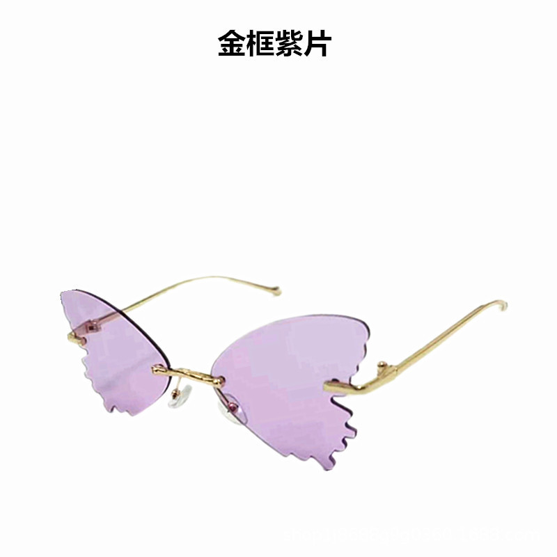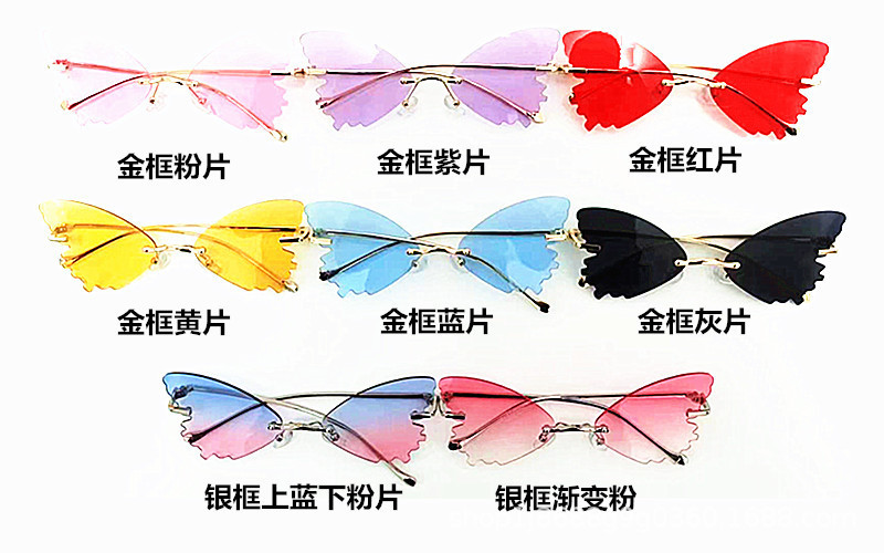 국경 나비 날개 패션 UV 보호 어린이 안경 새로운 금속 프레임리스 캔디 컬러 어린이 선글라스스토어 가기