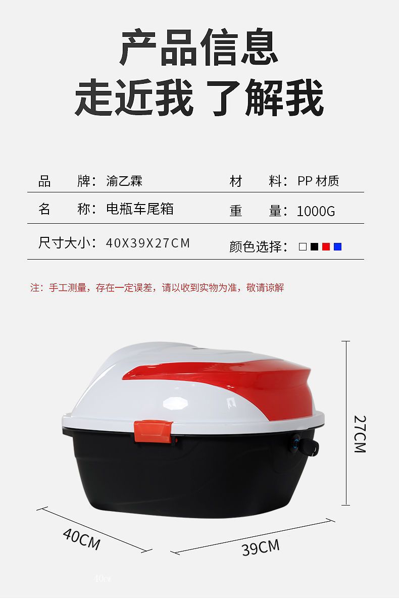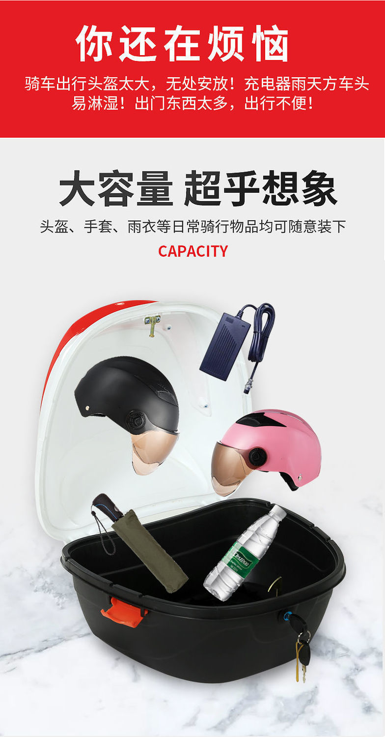 전기 배터리 자동차 트렁크 유니버설 두꺼운 대형 안티 쉐이크 페달 오토바이 보관 도구 상자 리어 트렁크스토어 가기