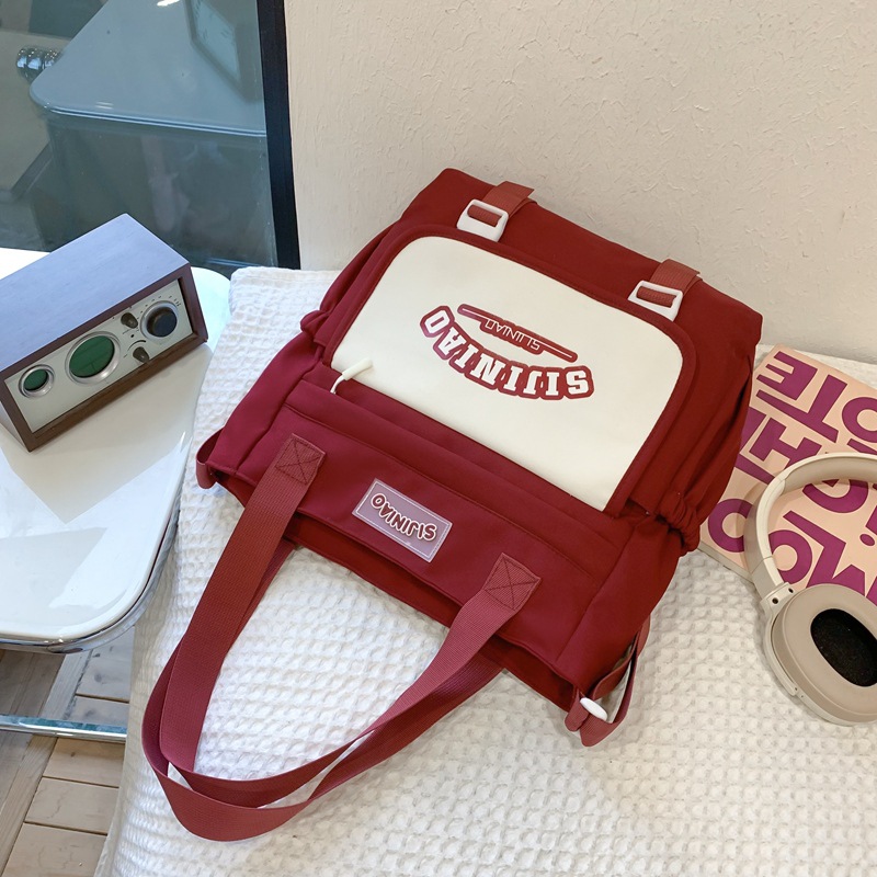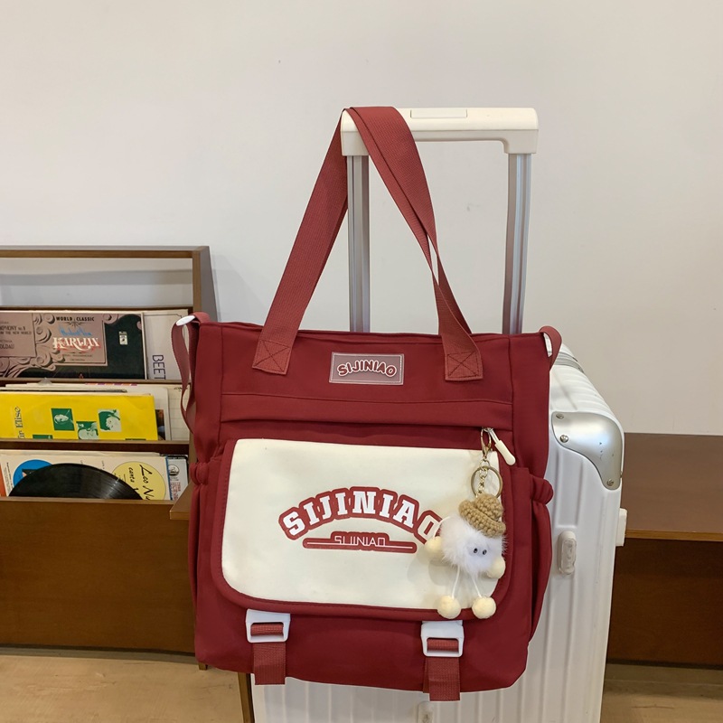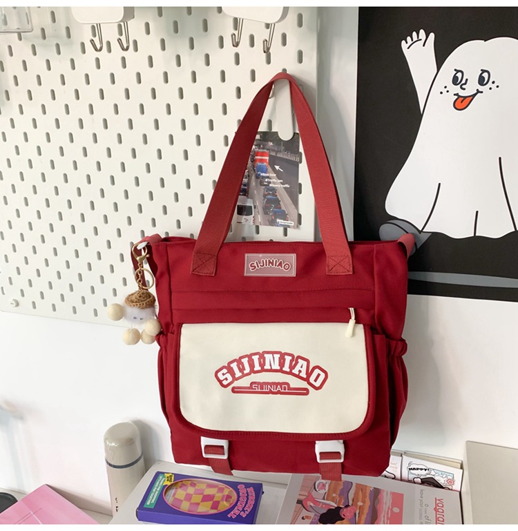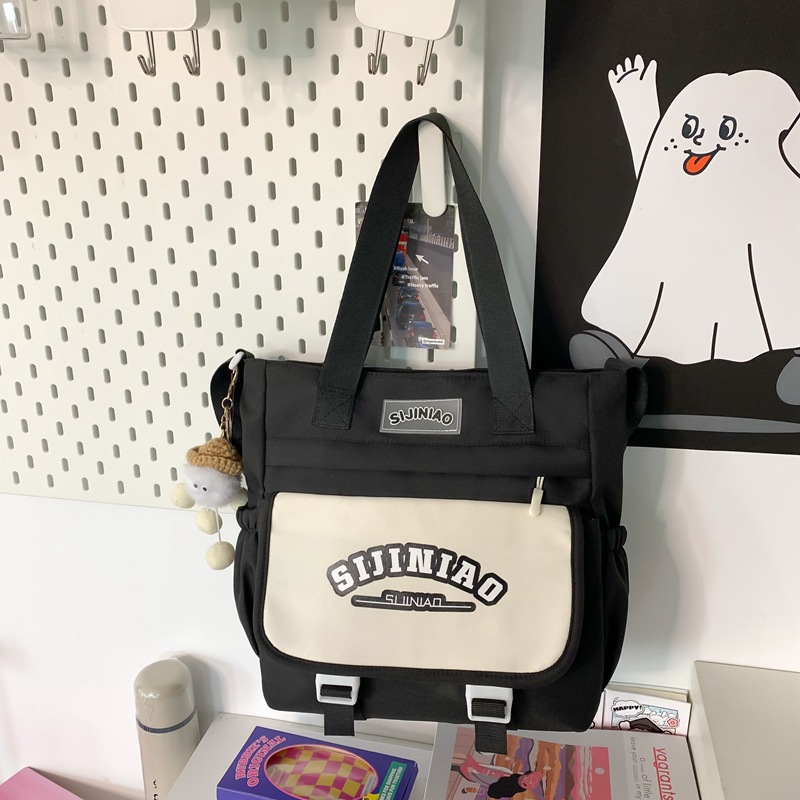 학생 여성 대학 크로스 바디 캔버스 가방 인 스타일 귀여운 학생 대용량 핸드백 어깨 가방