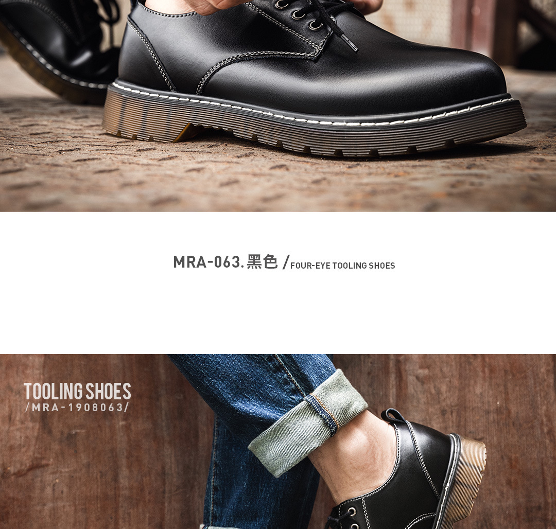 남성 신발 2025 새로운 블랙 정품 가죽 작업복 마틴 부츠 로우 탑 다목적 영국 대형 발가락 캐주얼 가죽 신발 유행 신발스토어 가기