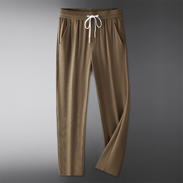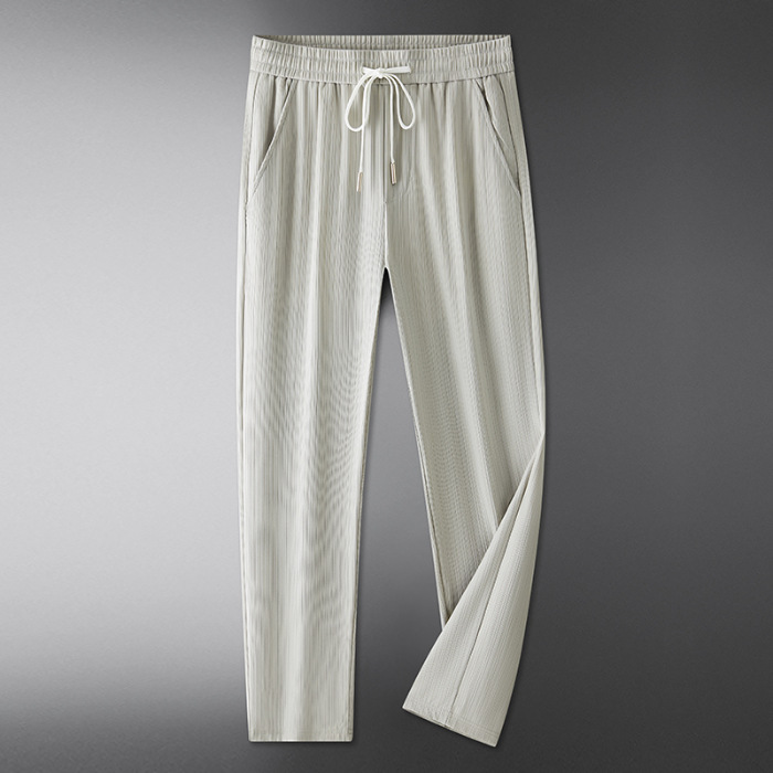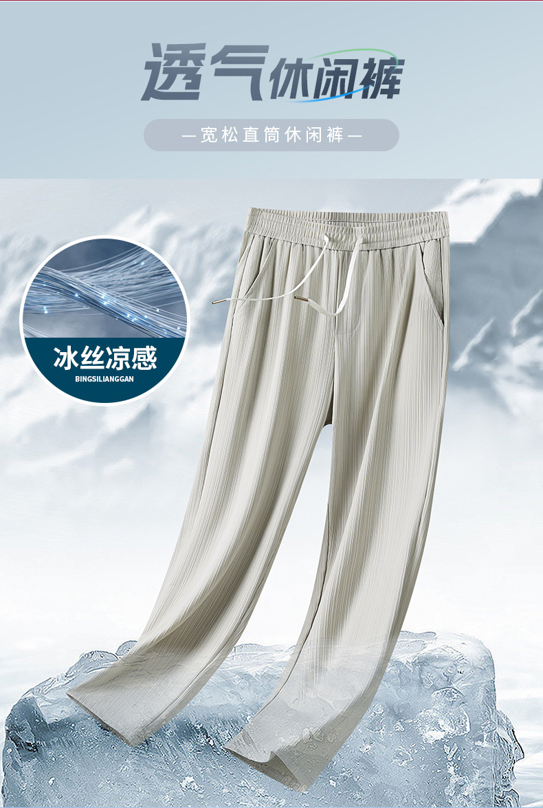 여름 쿨 아이스 실크 바지 남자 느슨한 올매치 통기성 고급 루즈 캐주얼 편안한 아메리칸 스타일 스트리트 바지