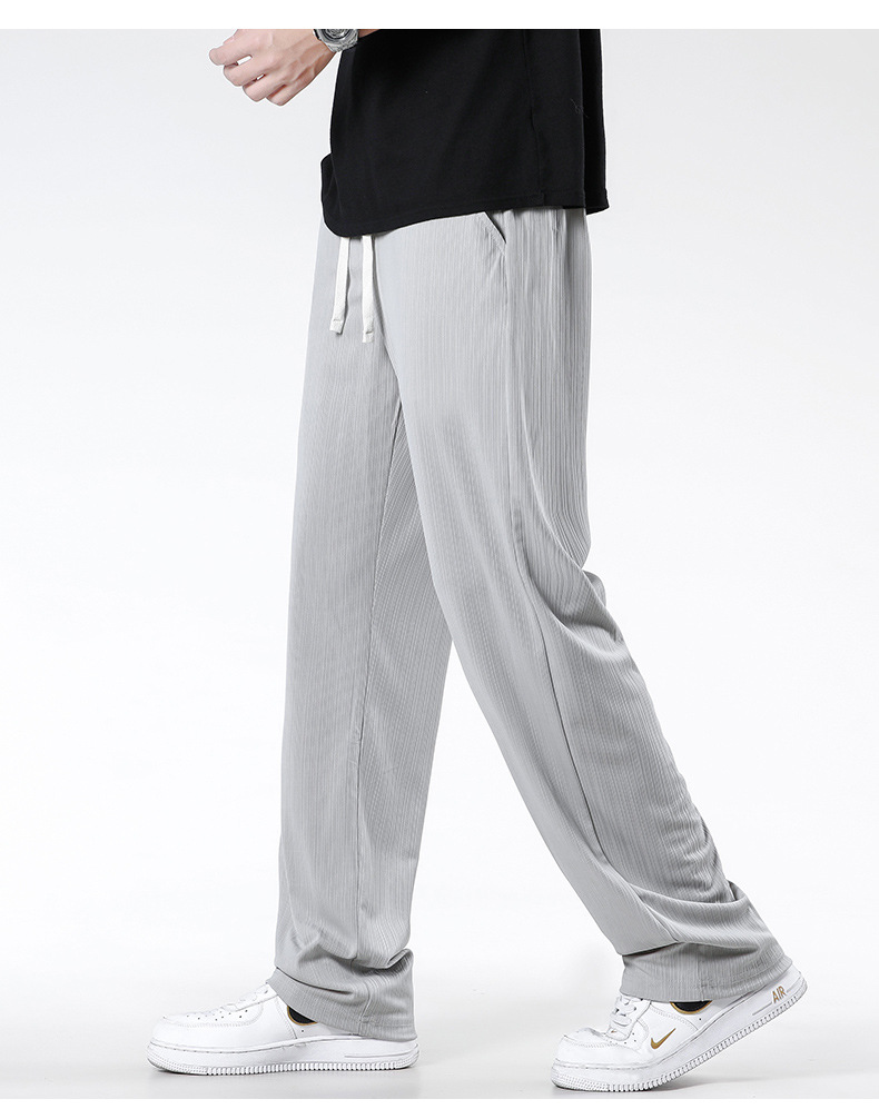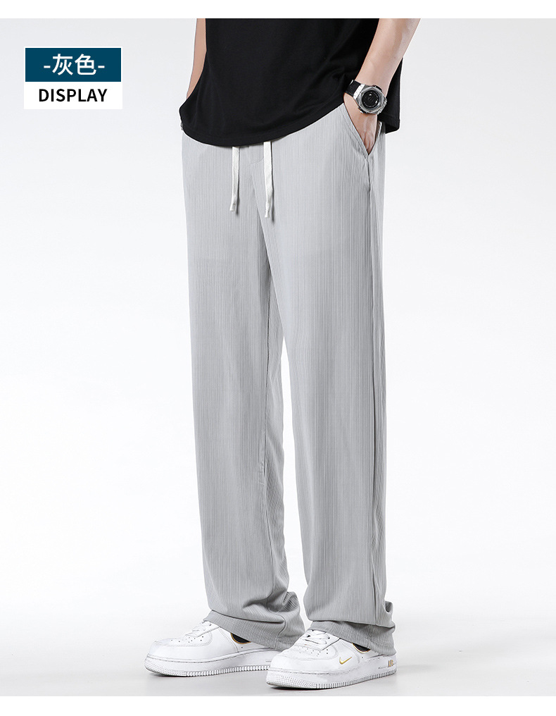 여름 쿨 아이스 실크 바지 남자 느슨한 올매치 통기성 고급 루즈 캐주얼 편안한 아메리칸 스타일 스트리트 바지스토어 가기
