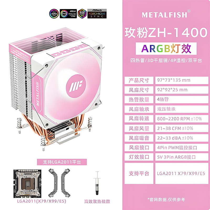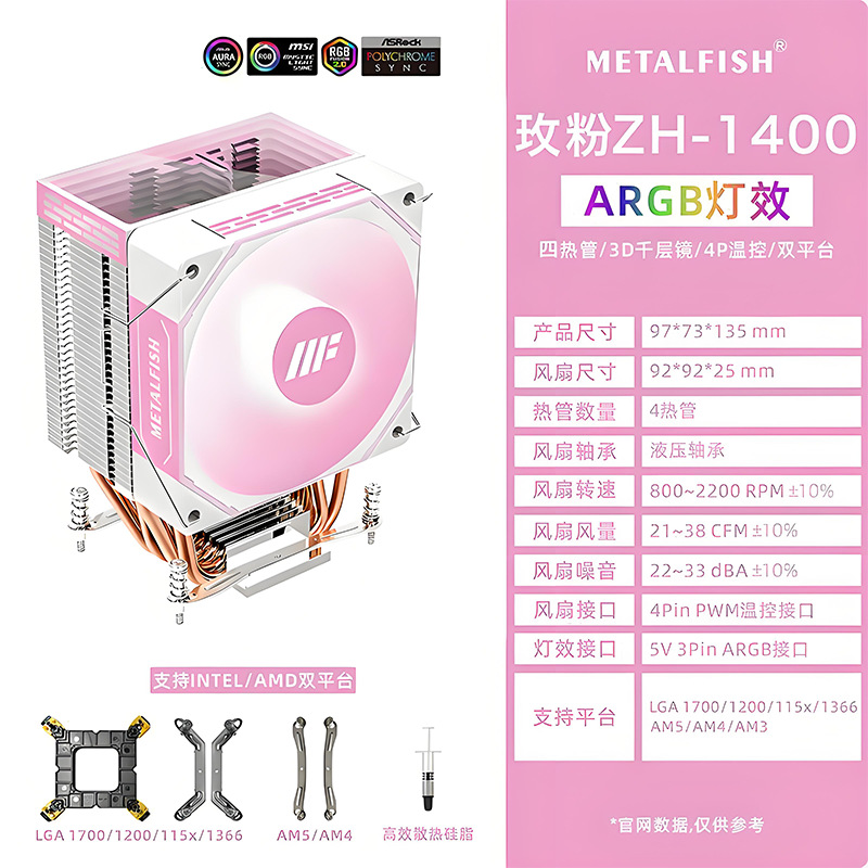 • ZH1400 핑크 화이트 ARGB 버전(히트파이프 4개) Intel+AMD