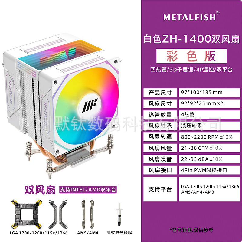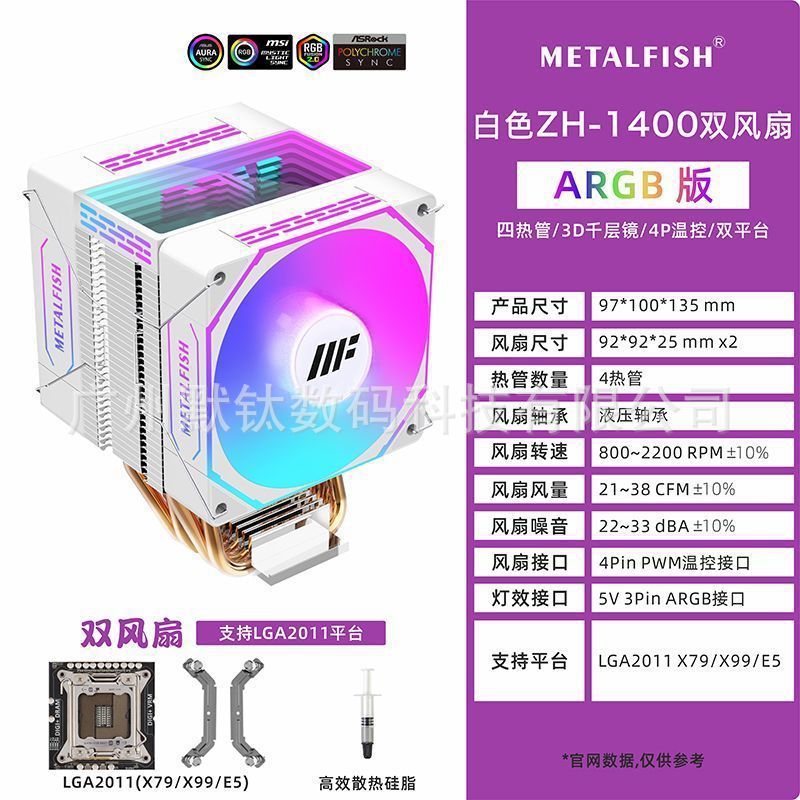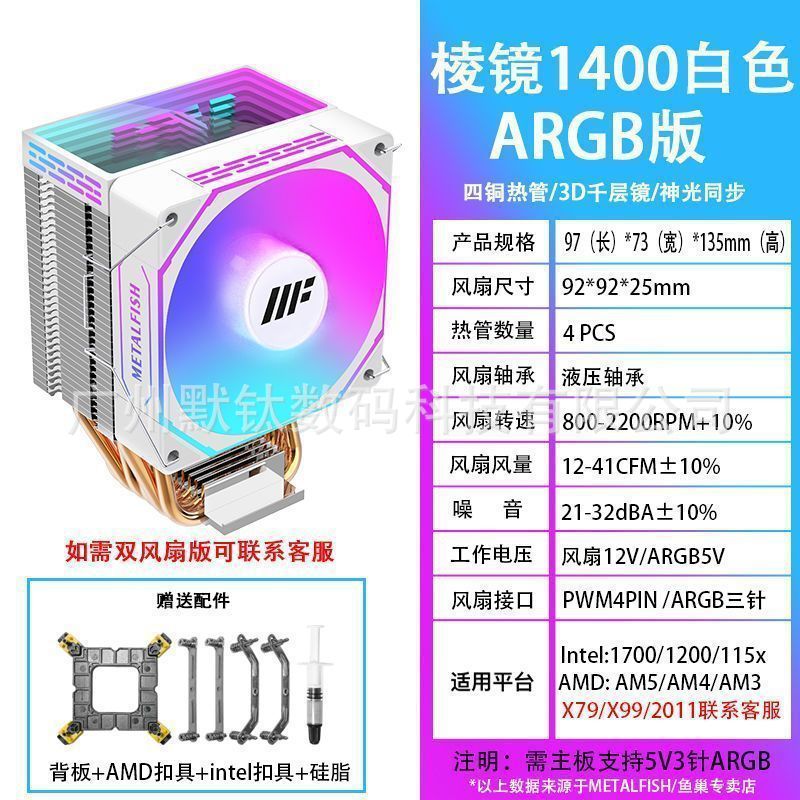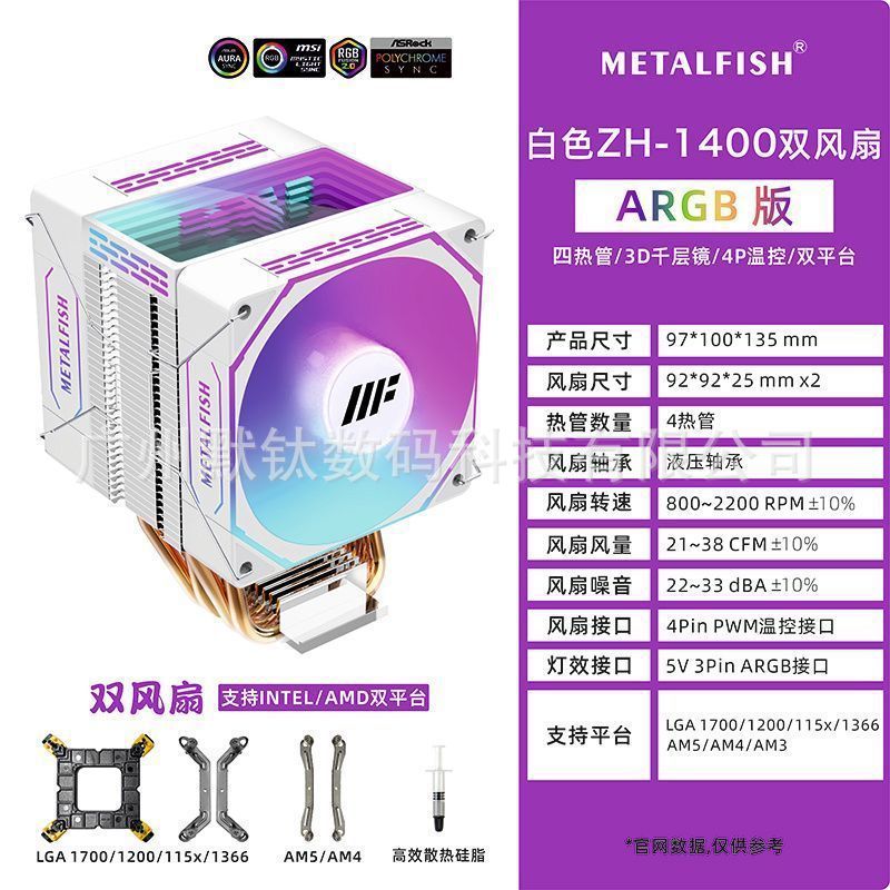 • ZH1400 흰색 ARGB 버전 듀얼 팬(히트파이프 4개) Intel+AMD