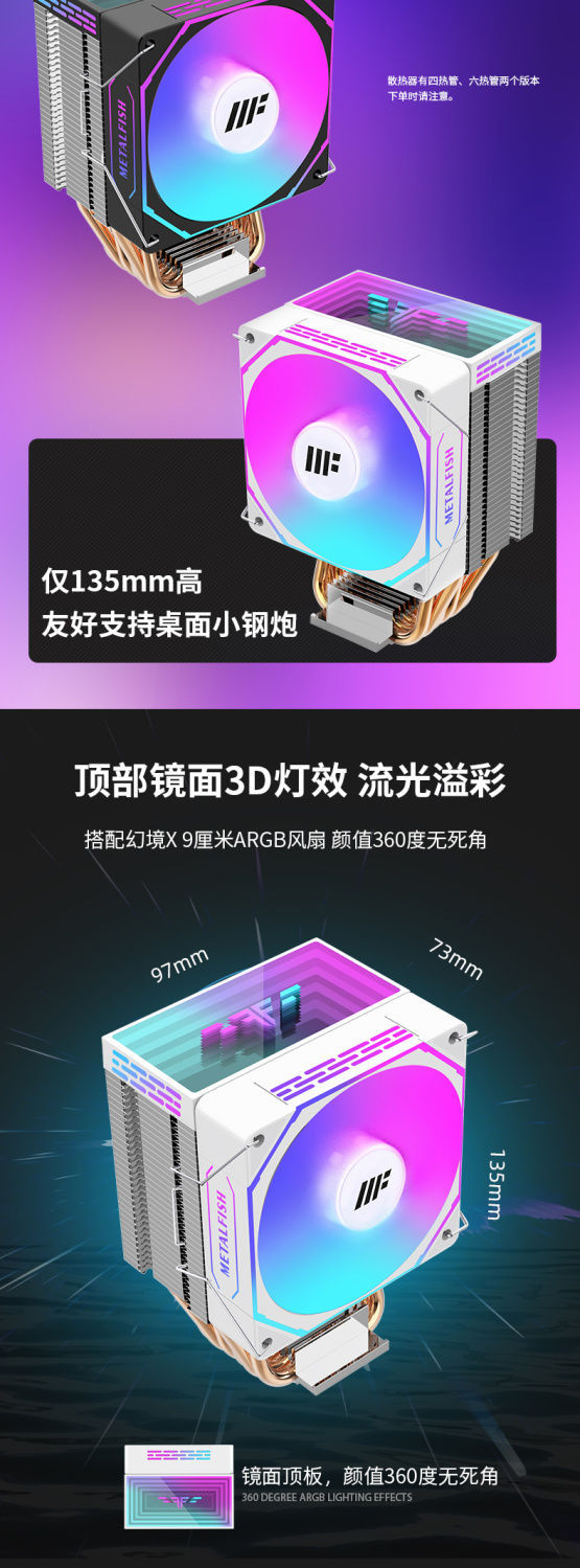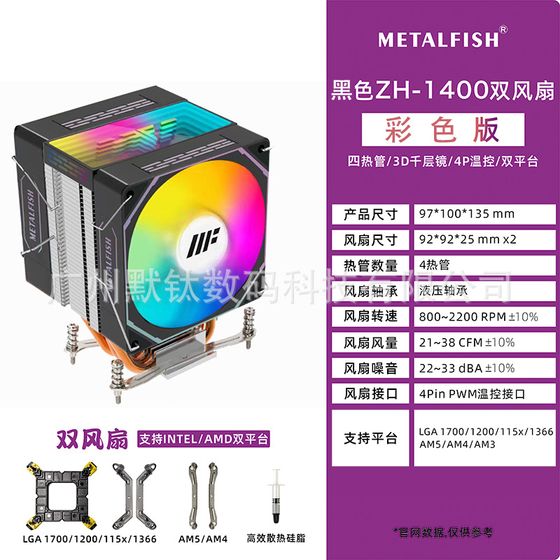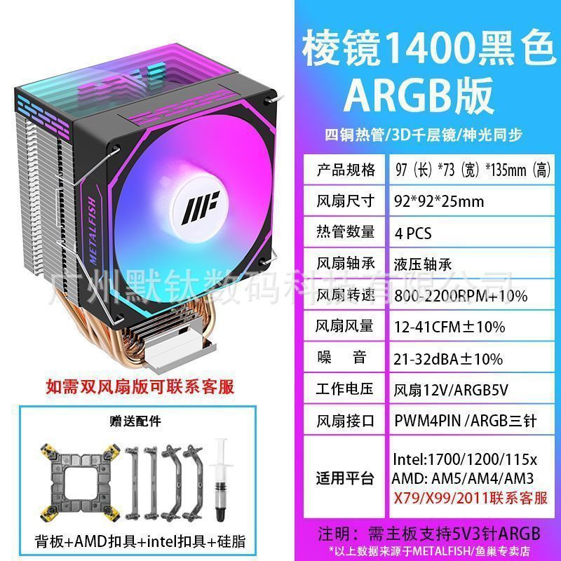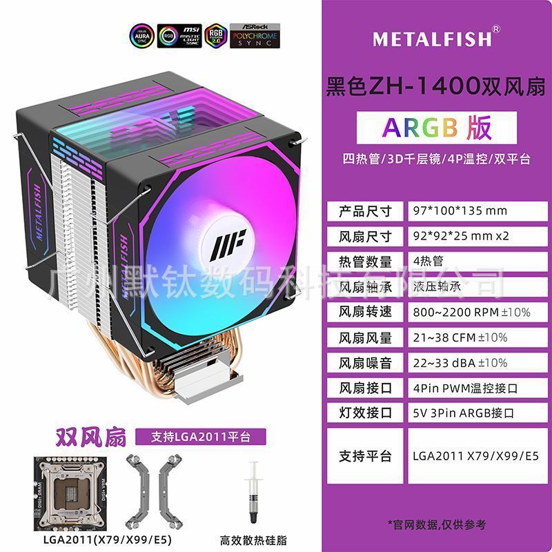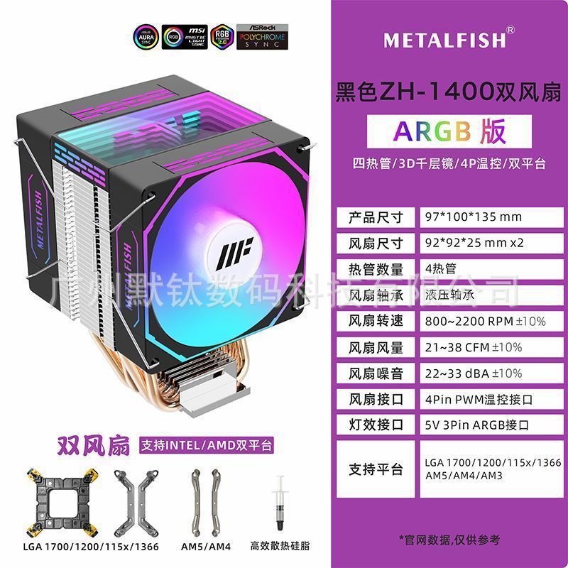 • ZH1400 검정색 ARGB 버전 듀얼 팬(히트파이프 4개) Intel+AMD