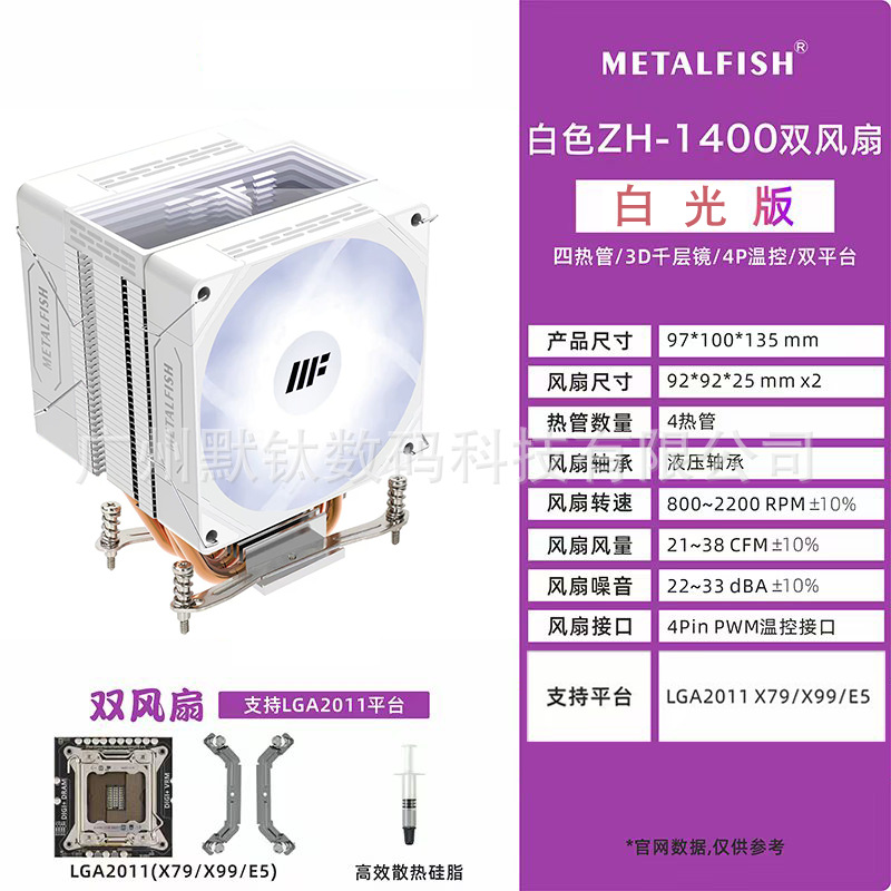 • X79X99 마더보드용-ZH1400 흰색 백색광 버전 듀얼 팬(히트 파이프 4개)