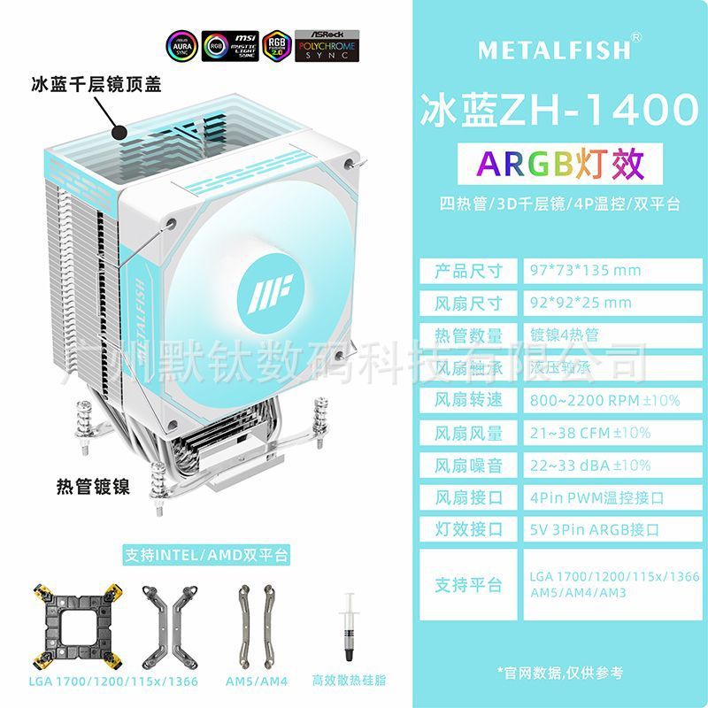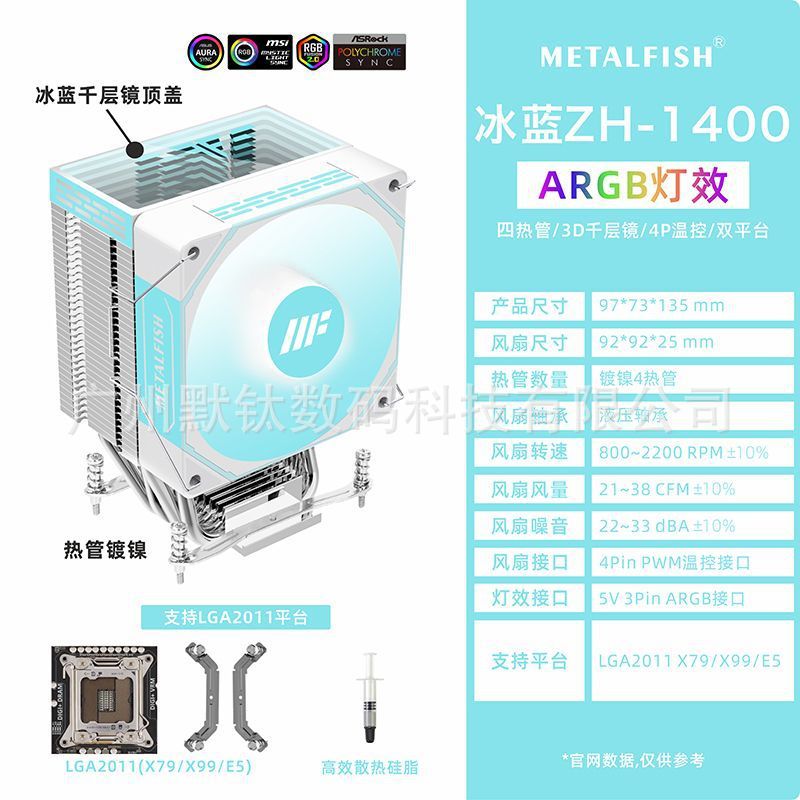 • X79X99 마더보드용 - ZH1400 아이스 블루 ARGB 버전(히트 파이프 4개)