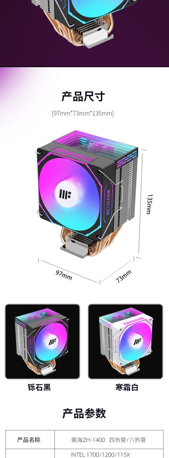 • ZH1400 검정색 조명 버전 듀얼 팬(히트파이프 4개) Intel+AMD