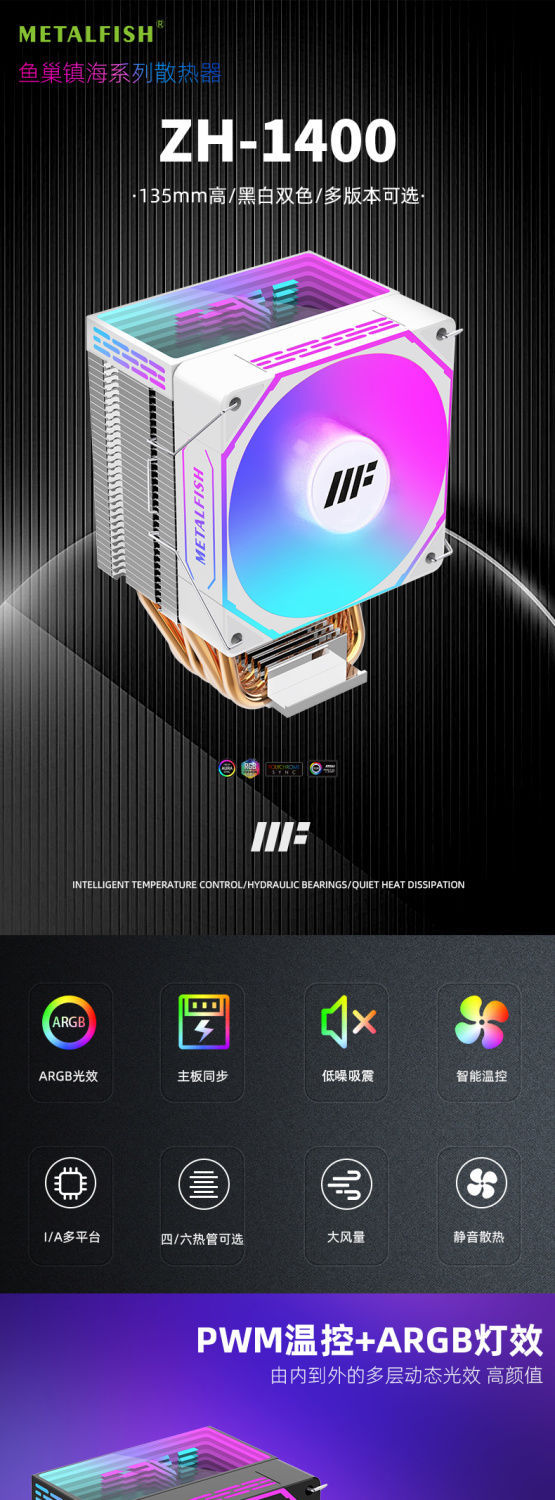 • ZH1400 흰색 ARGB 버전(4 히트파이프) Intel+AMD