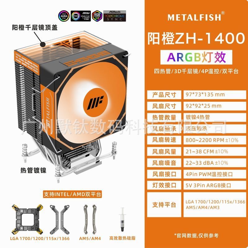 • ZH1400 검정색 및 주황색 ARGB 버전(히트파이프 4개) Intel+AMD