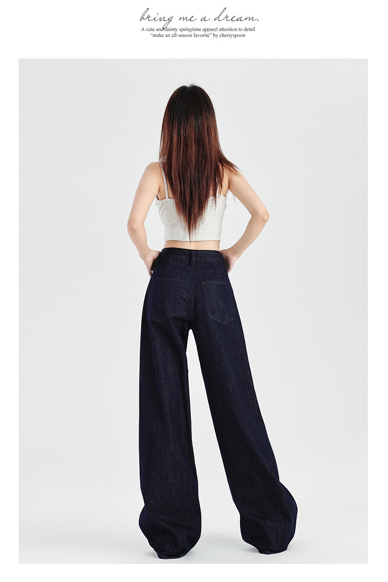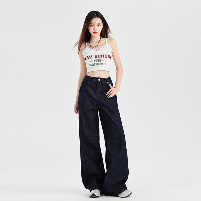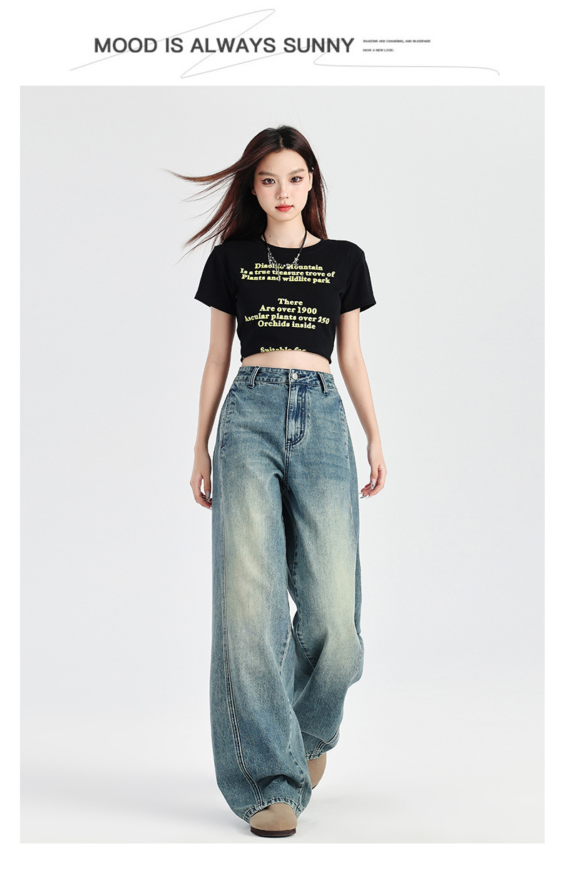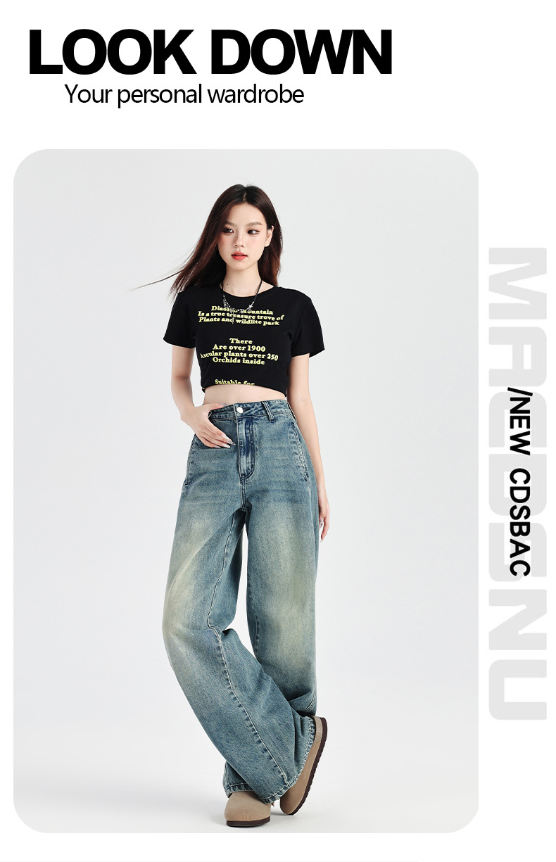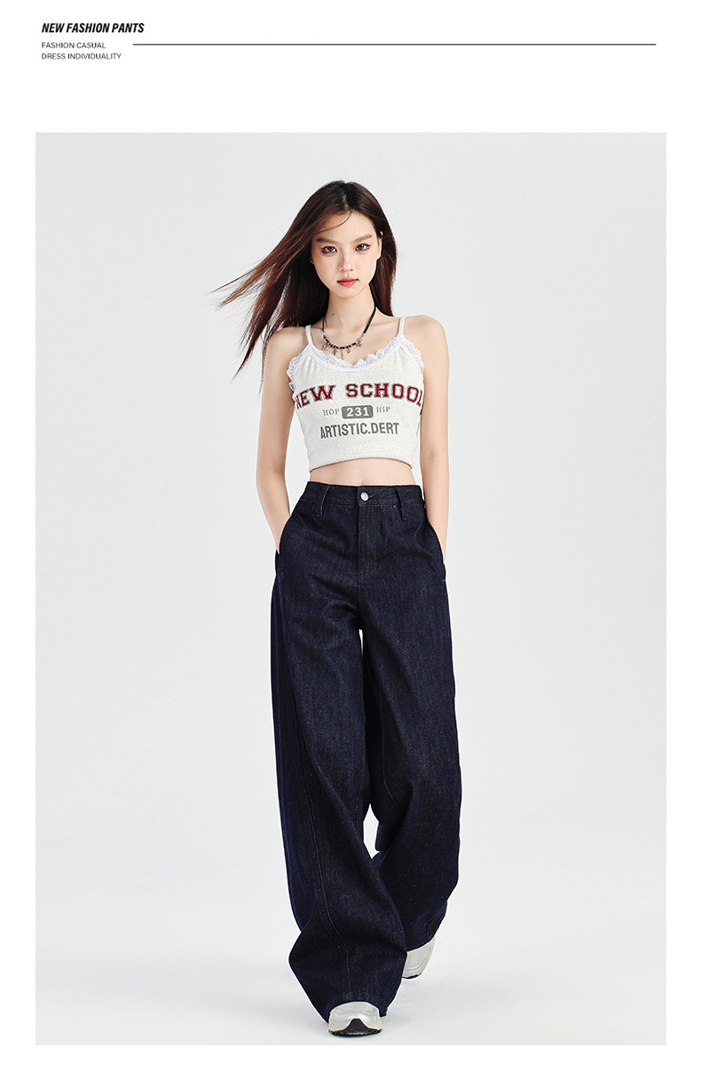 [안티 페이딩 데님 패브릭] 레트로 시미 터 스티칭 청바지 여성용 루즈 드 와이드 레그스토어 가기