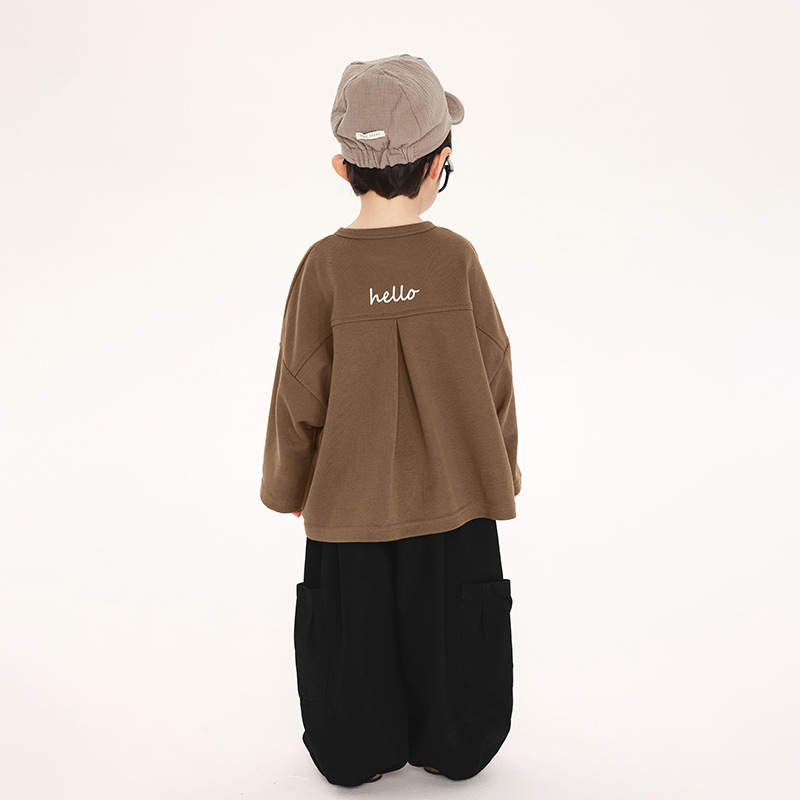 창구 아동복 소년 티셔츠 긴팔 가을 옷 어린이 봄과 가을 풀오버 탑 한국 스타일 느슨한 운동복 중 · 작은 어린이스토어 가기