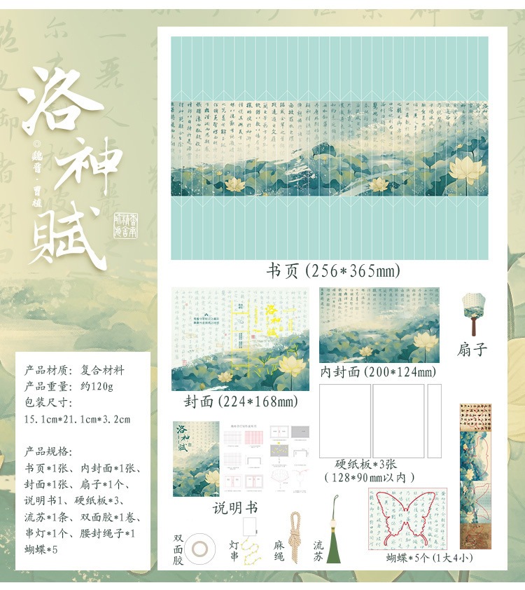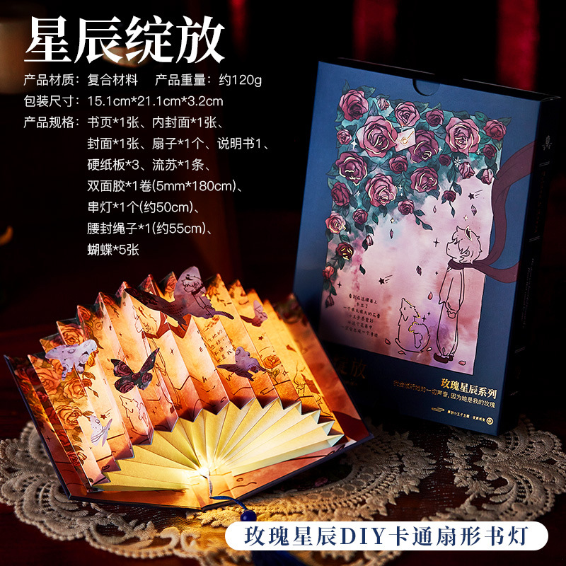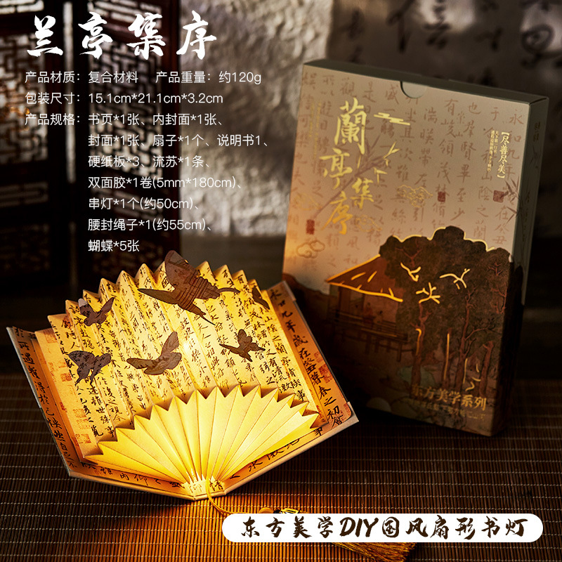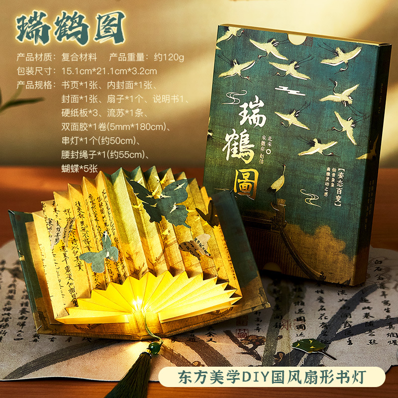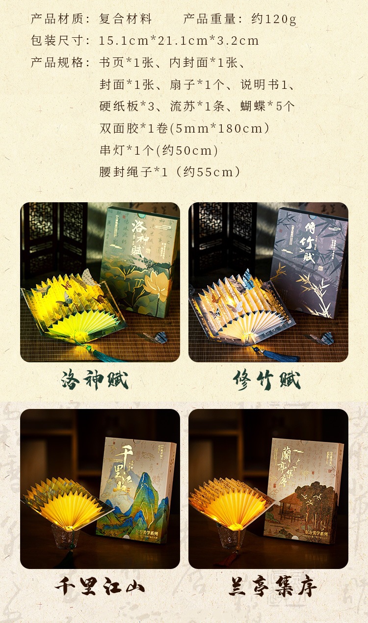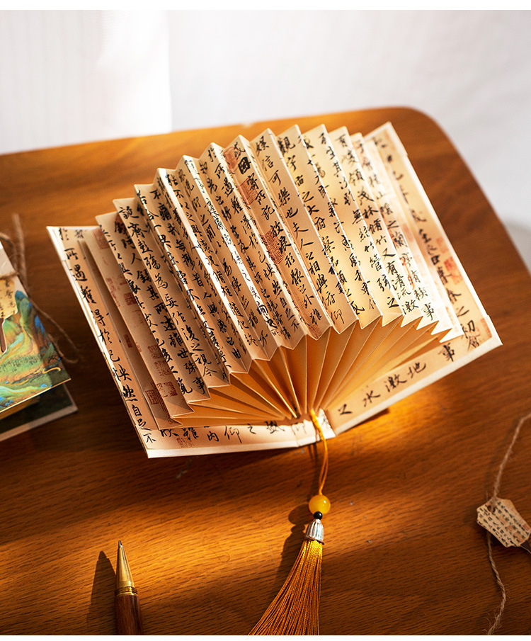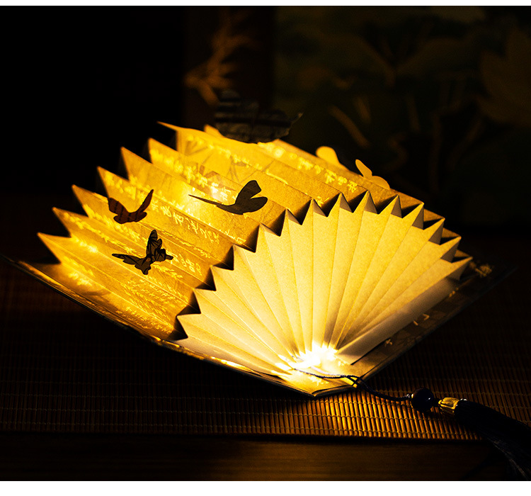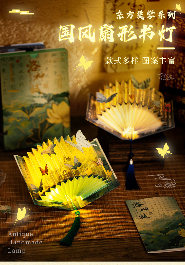 Guofeng Wenchuang Luoshen Fu 팬 모양의 책 램프 창조적 인 국가 조수 DIY 골동품 고급 접이식 분위기 야간 조명