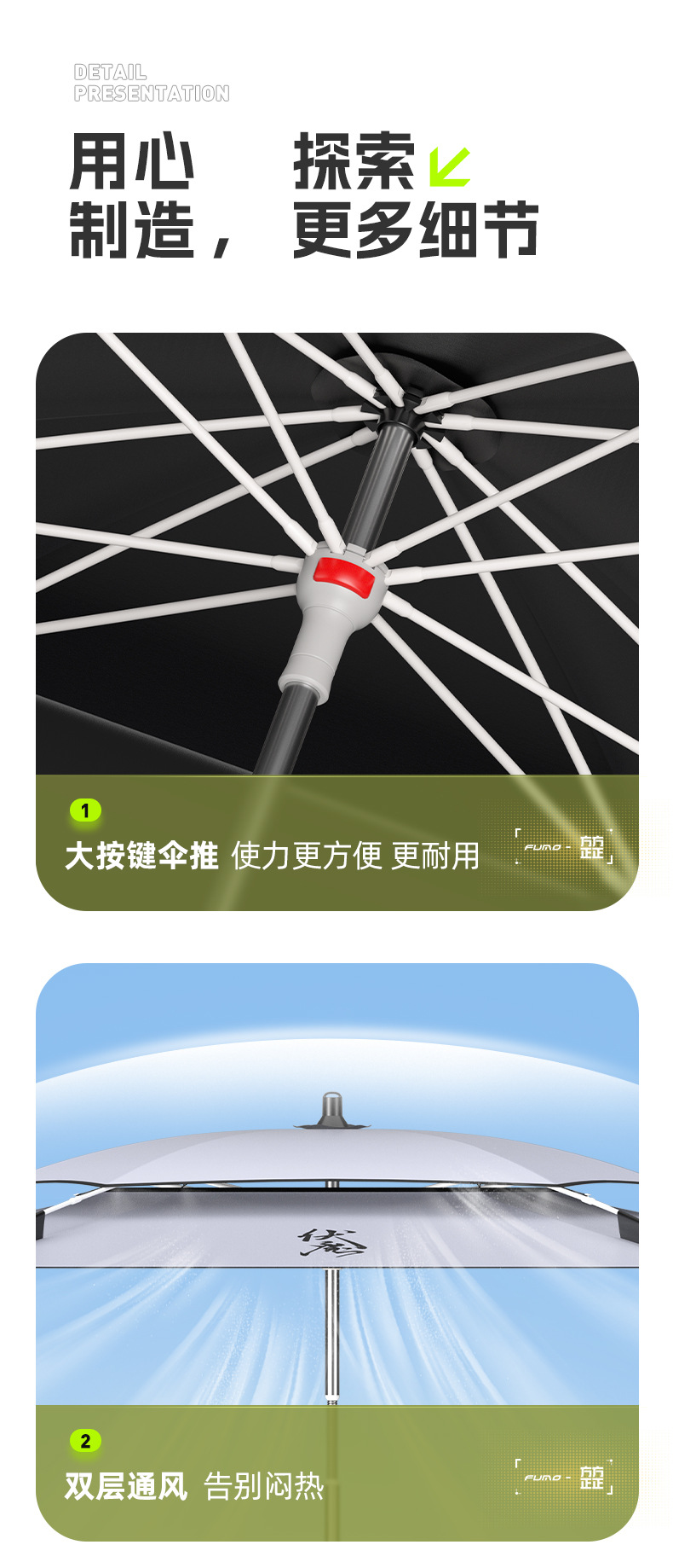 • 매직 버튼 꽃 사각형 스트레이트 로드 우산 2.2 미터