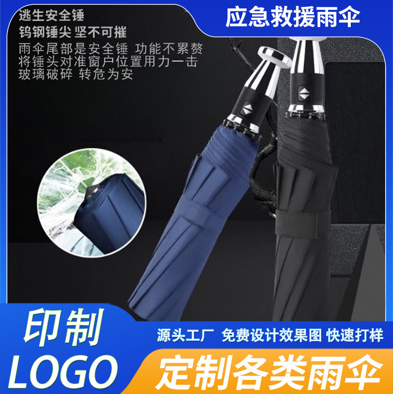 우산 긴급 구조 차량용 자동 다기능 우산 방수 텅스텐 강철 망치 창문 파괴 방지 자외선 차단