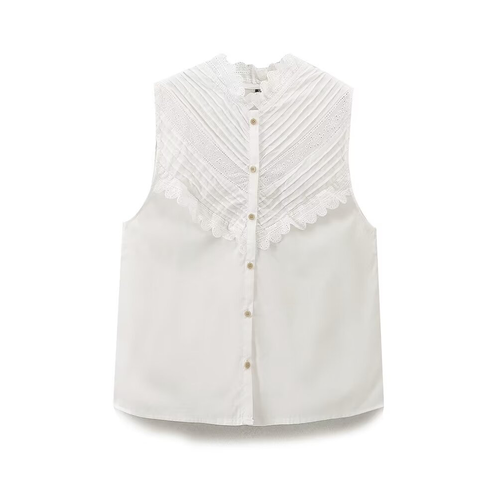 UC & ZA 국경 유럽 및 미국 스타일 여성복 여름 새로운 프랑스 기질 슬림 민소매 레이스 탑 7961742