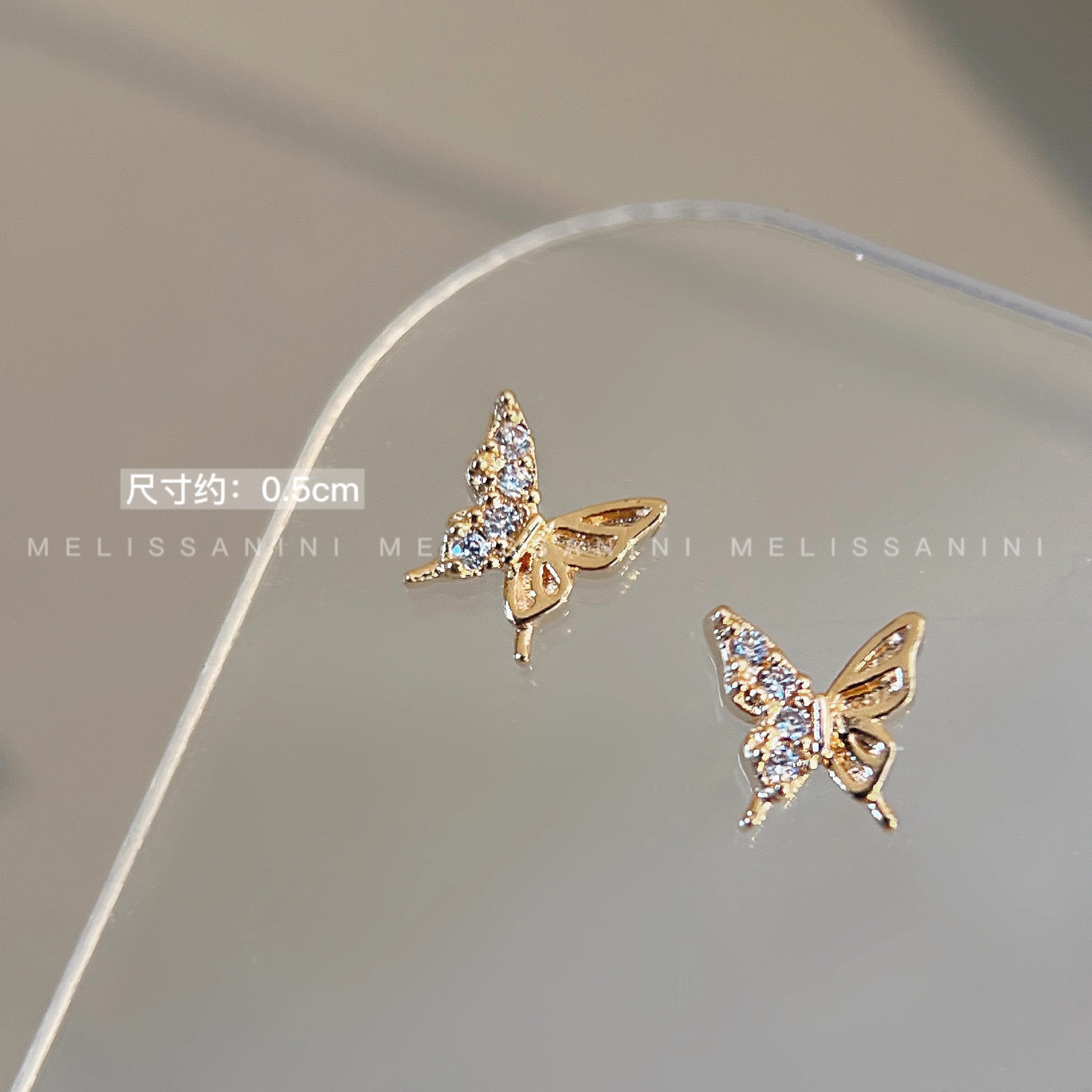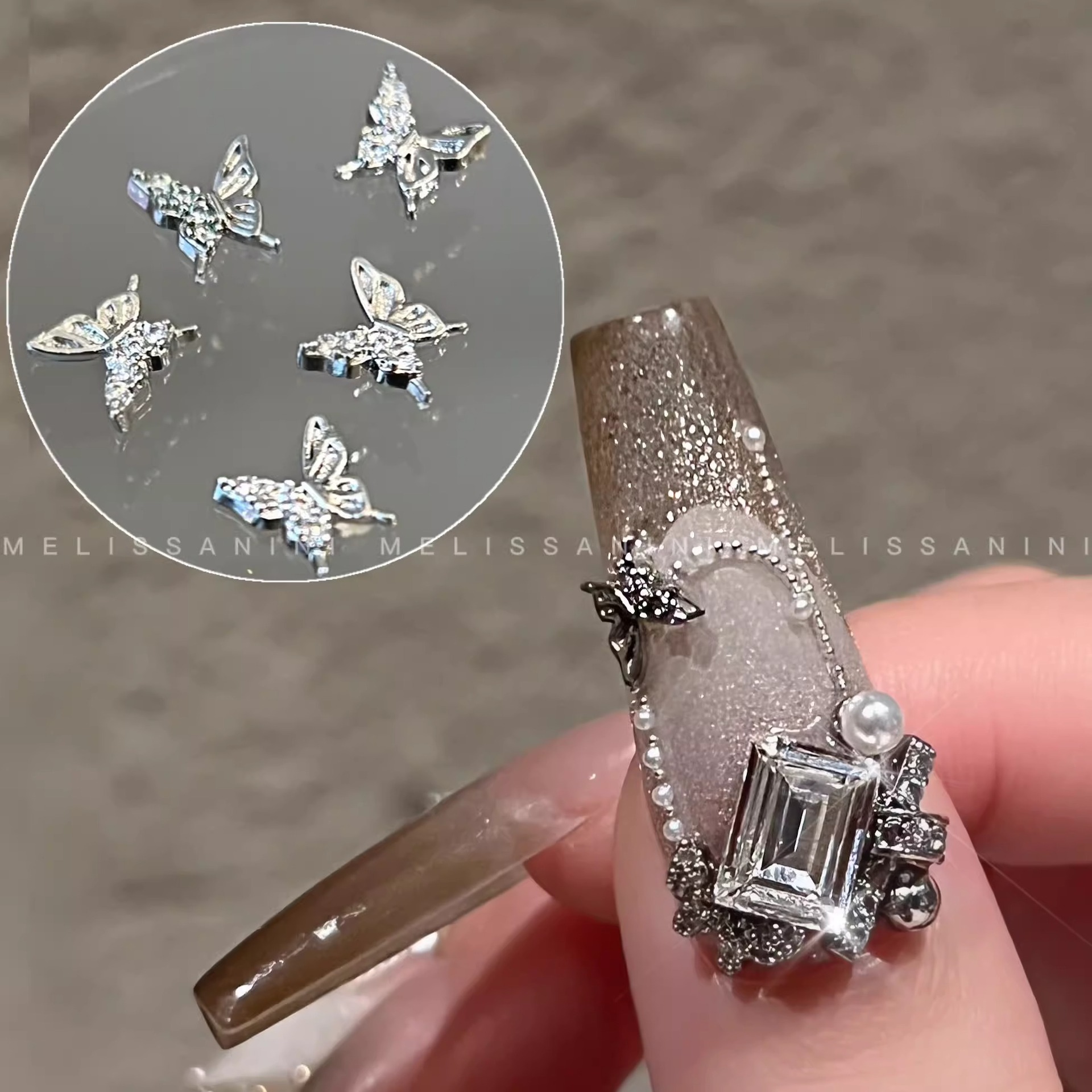 고급 실버 나비 네일 아트 쥬얼리 인터넷 연예인 폭발성 다이아몬드 작은 나비 절묘한 빛나는 네일 아트 쥬얼리 장식