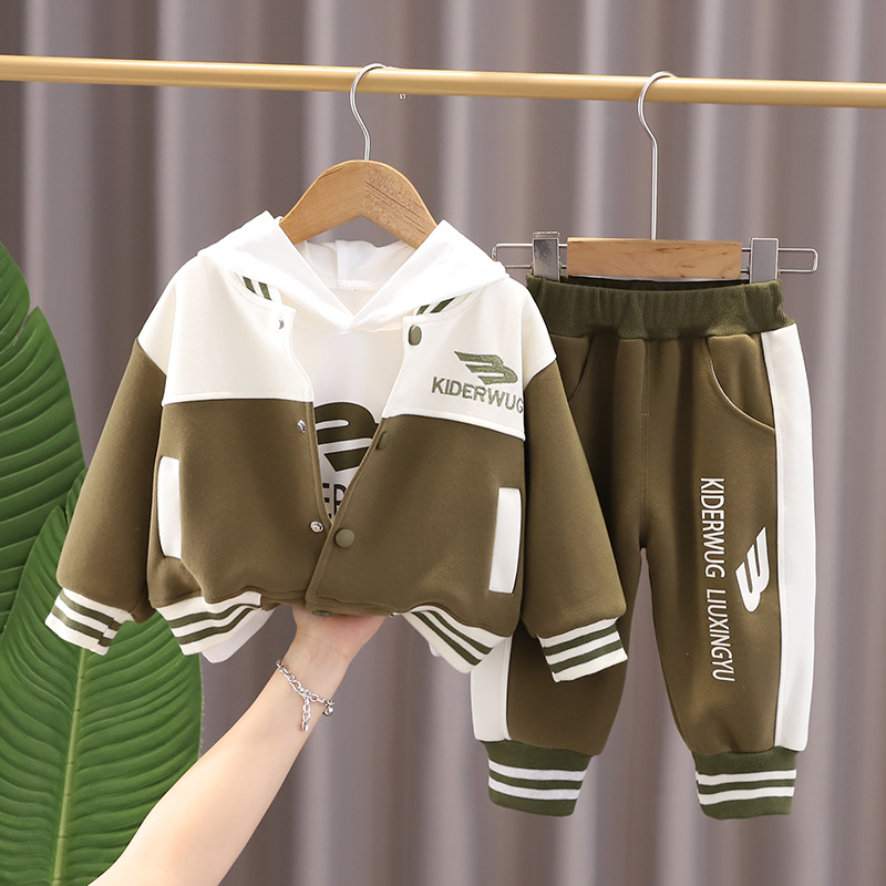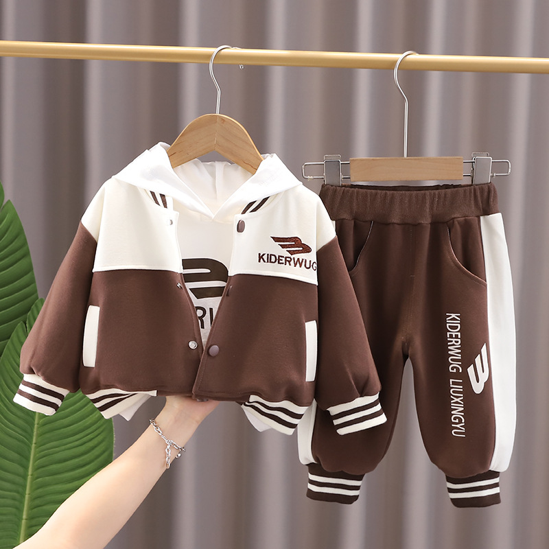 2024 남학생과 여학생을위한 새로운 가을 아동복 후드 지퍼 3 피스 어린이 세트 아기 어린이 가을 의류 도매