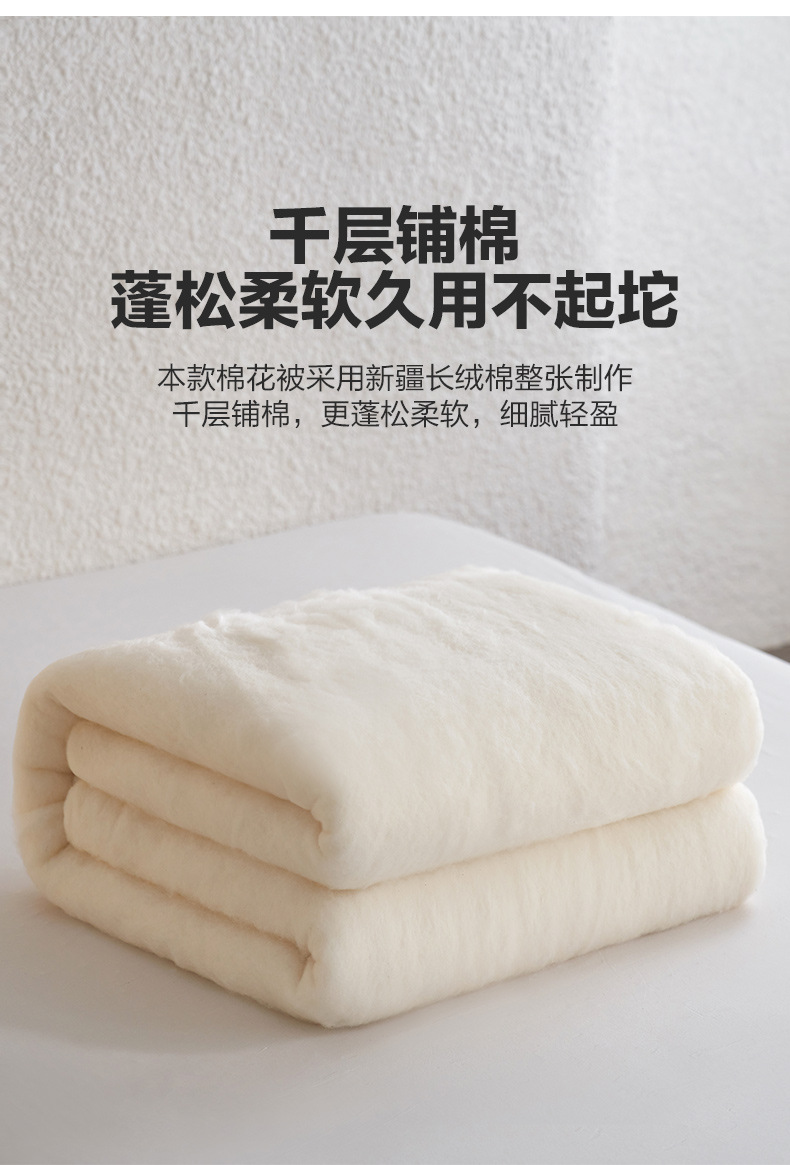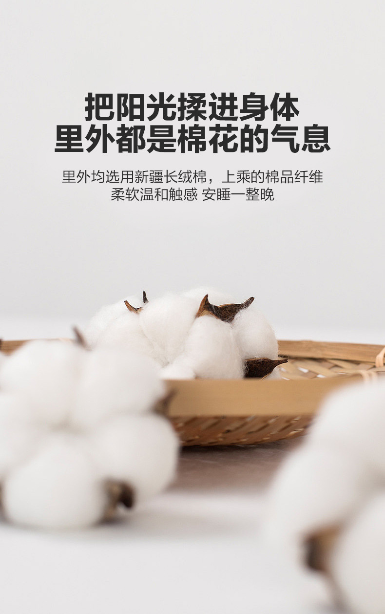 新疆细绒棉花,纤维柔长,保暖性好,给你带来无与伦比的舒适感。🌙