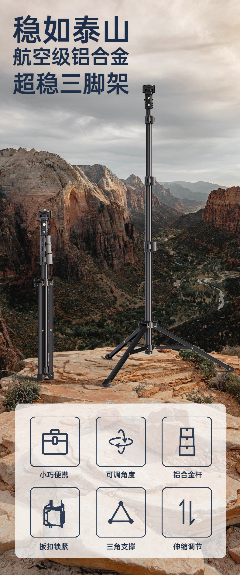 • (업그레이드 버전) 알루미늄 합금 삼각대 [선물 전화 홀더 보관 가방]]