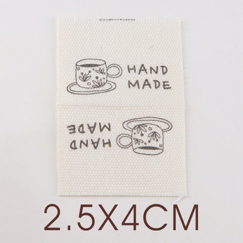 재고 수제 천 라벨 블랙 커피 컵 활 개구리 토끼 면화 라벨 액세서리 바느질 사이드 라벨 반으로 접혀