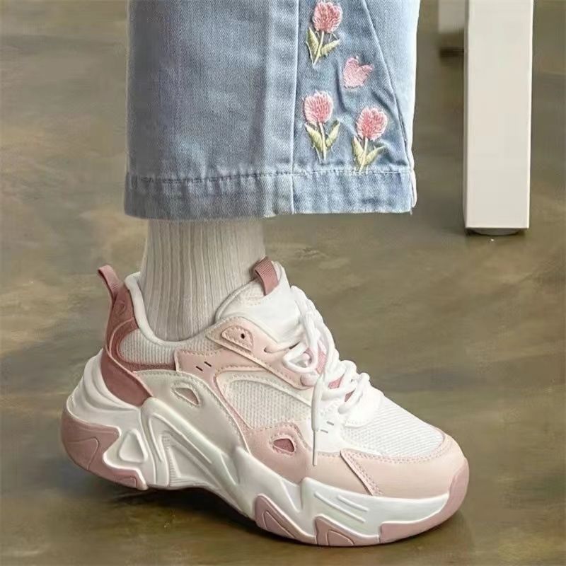 여성을 위한 홍콩 스타일 두꺼운 밑창 아빠 신발, 트렌디하고 다재다능한 2025 봄 여름 새로운 슈퍼 핫 다용도 학생 운동화