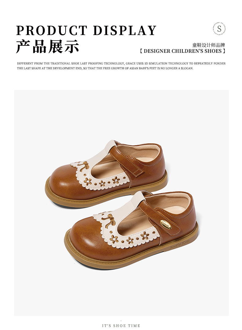 Snoffy Snafi 소녀 가죽 신발 어린이 공주 신발 2024 가을 새로운 패션 Guofeng 말 얼굴 스커트 신발스토어 가기