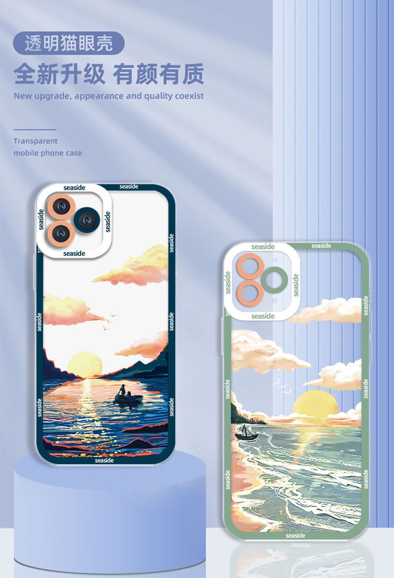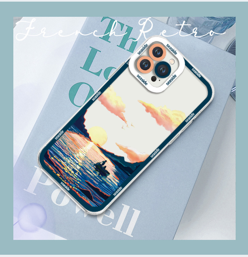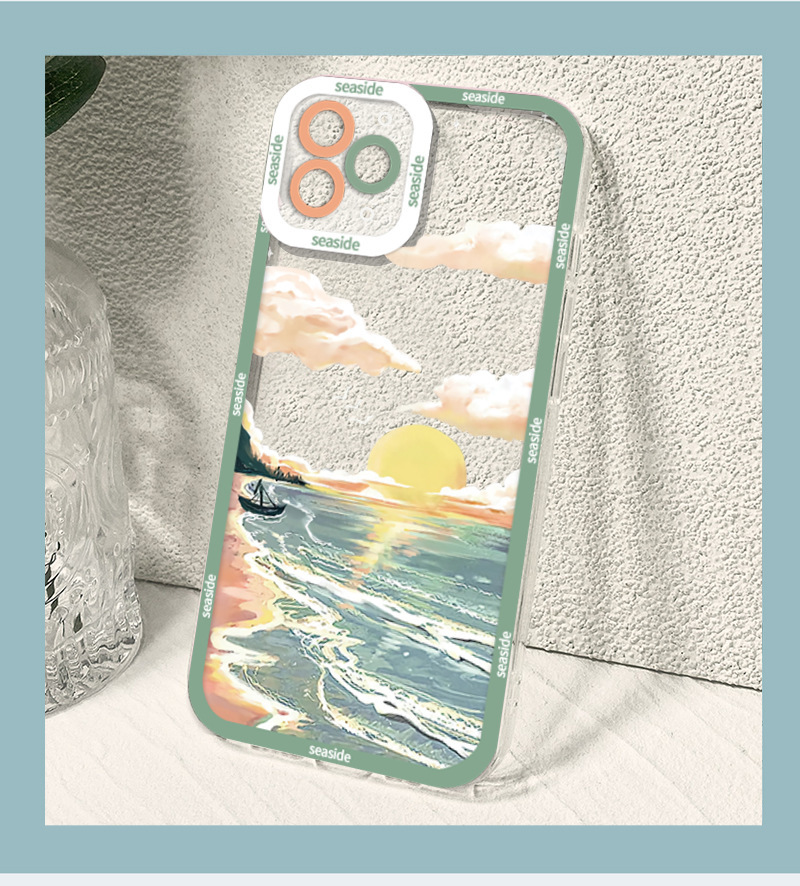 국경을 넘는 설산 고속도로 애플 17 휴대폰 케이스 아이폰16플러스용 투명 15 유화 14 해변 풍경