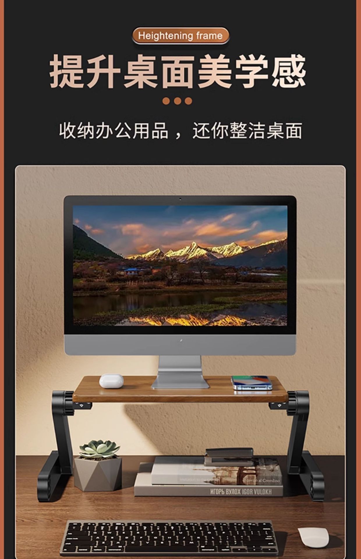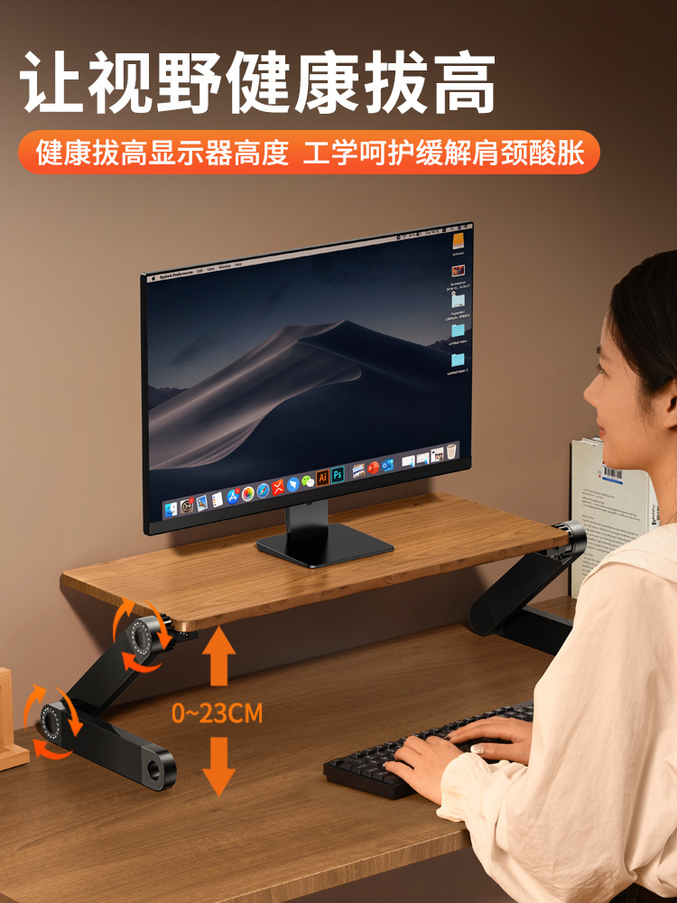 단단한 나무 모니터 스탠드 조절 각도 노트북 랙 사무실 데스크탑 스토리지 랙 도매스토어 가기